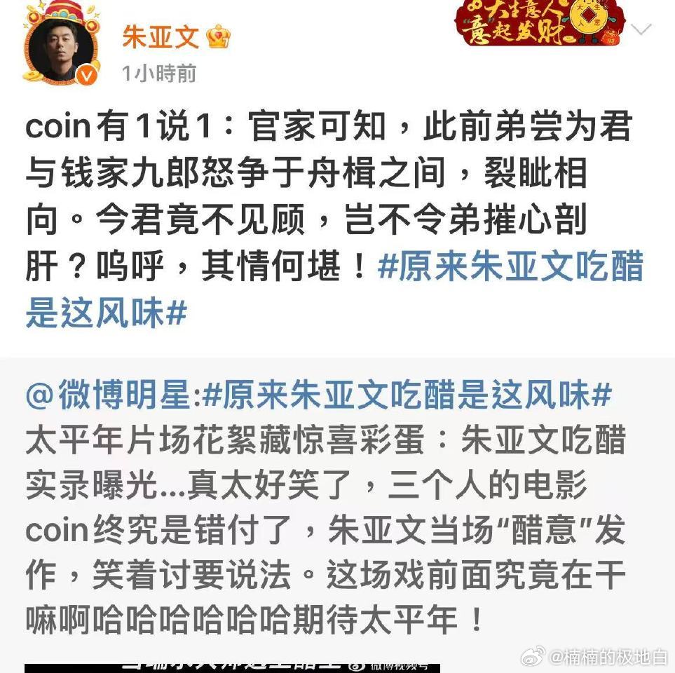 随橙想朱亚文反耳是个古风coin 谁被朱亚文的古风coin号可爱到了!文言文小作文控诉式吐槽,醋意拉满还带着小傲娇,三个人的电影没镜头,心碎coin哥在线求关注~