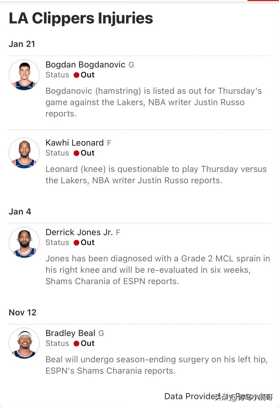 湖人vs快船比赛预告!!!湖人对阵快船比赛预测,湖人被看衰! 北京时间1月22日,又到了周五,湖人也将继续客场打快船,洛杉矶德比再次上演,这次会擦出怎样的火花呢? 湖人伤病情况: 里夫斯和蒂耶罗确认继续不打。 快船伤病情况: 比尔、小琼斯、博格丹、伦纳德都无法出战。 目前,从ESPN给出的预测结果来看,湖人以不足五成的胜率被看衰,不过双方差距不大,快船也只有54%,而且快船主场只有-1.5,基本上看发挥了。 湖人整体伤病情况还是好于快船的,不过最近快船势头仍然还不错,虽然他们上一场输给他公牛,而湖人那边则是赢了掘金,势头也是不错的,双方必将上演一场激烈的比赛,球迷们有福了!快船 湖人 快船 nba 湖人