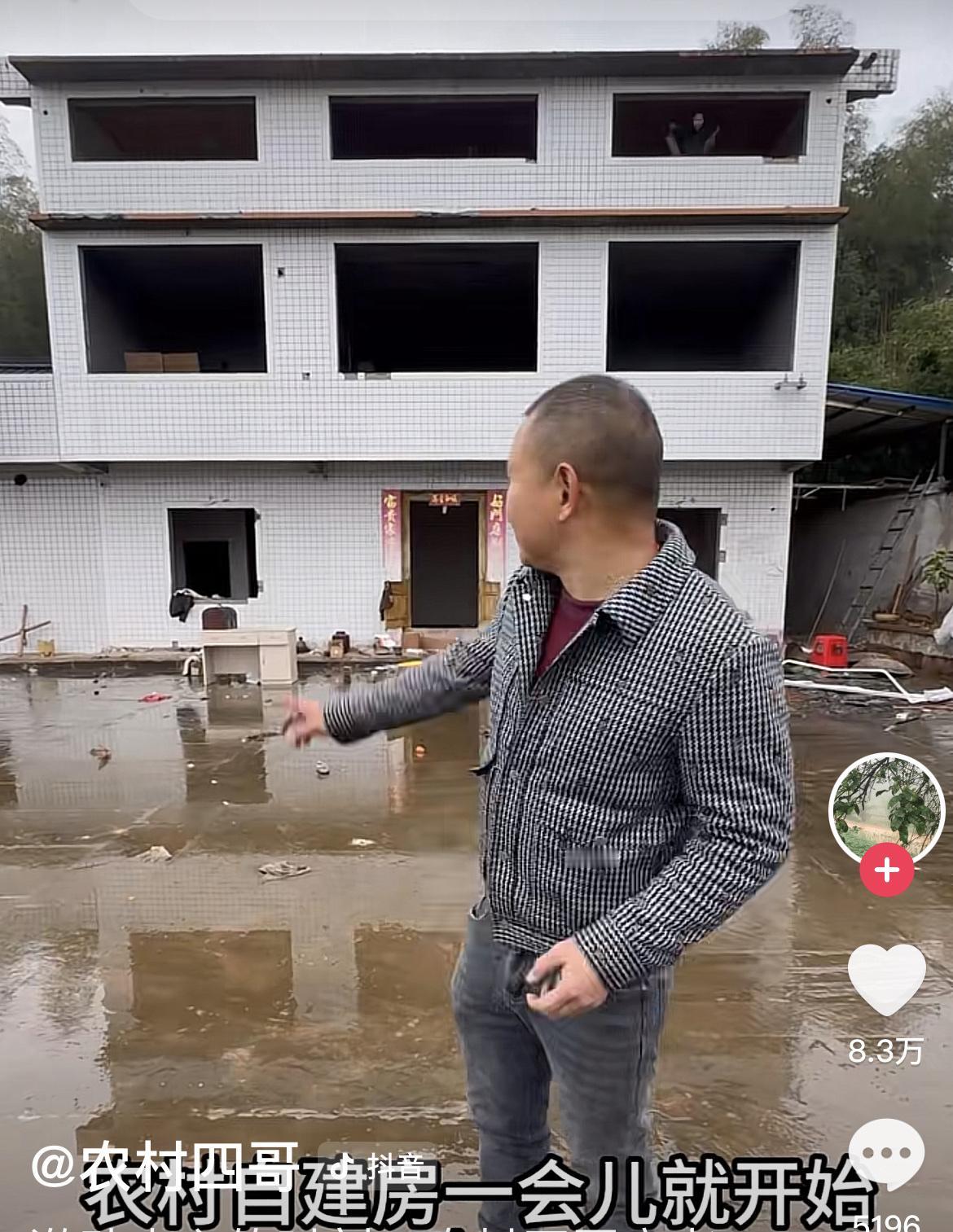 农村四哥修房子,这要吃多少肉?上次徐三娃扛了半扇猪肉,今天,农村大姐家的勇哥也扛了半扇猪肉,大姐还提了条大鱼来! 王爸王妈说,不用拿那么多,他两个说,娘家修房子,而且又要过年了,所以扛来,另外半边给勇哥爸妈! 后来,他们一起去看农村四哥修房子的工地,天上还微微下着雨,但工人依然在施工,钢筋已扎到第2层,还在布水电管道的线。 勇哥说,房子的朝向转了点! 看吃刨猪汤航拍图,确实,房子的朝向不像以前正对场坝,场坝对着上来的路。现在房子转了点,视野更加开阔! 梁快视频说,房子主体预算40、50万,不晓得够不!还说刘老九家房子也很宽,才花30多万,不过刘老九自己是施工的,工时这些就省了! 看起来,确实花费不少