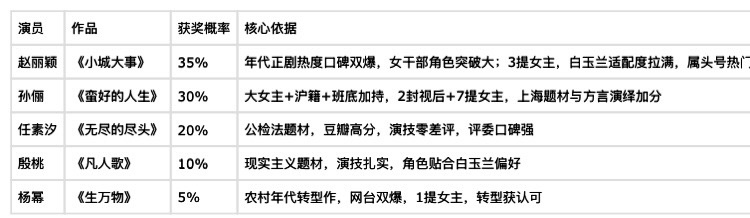 白玉兰最佳女主角预测