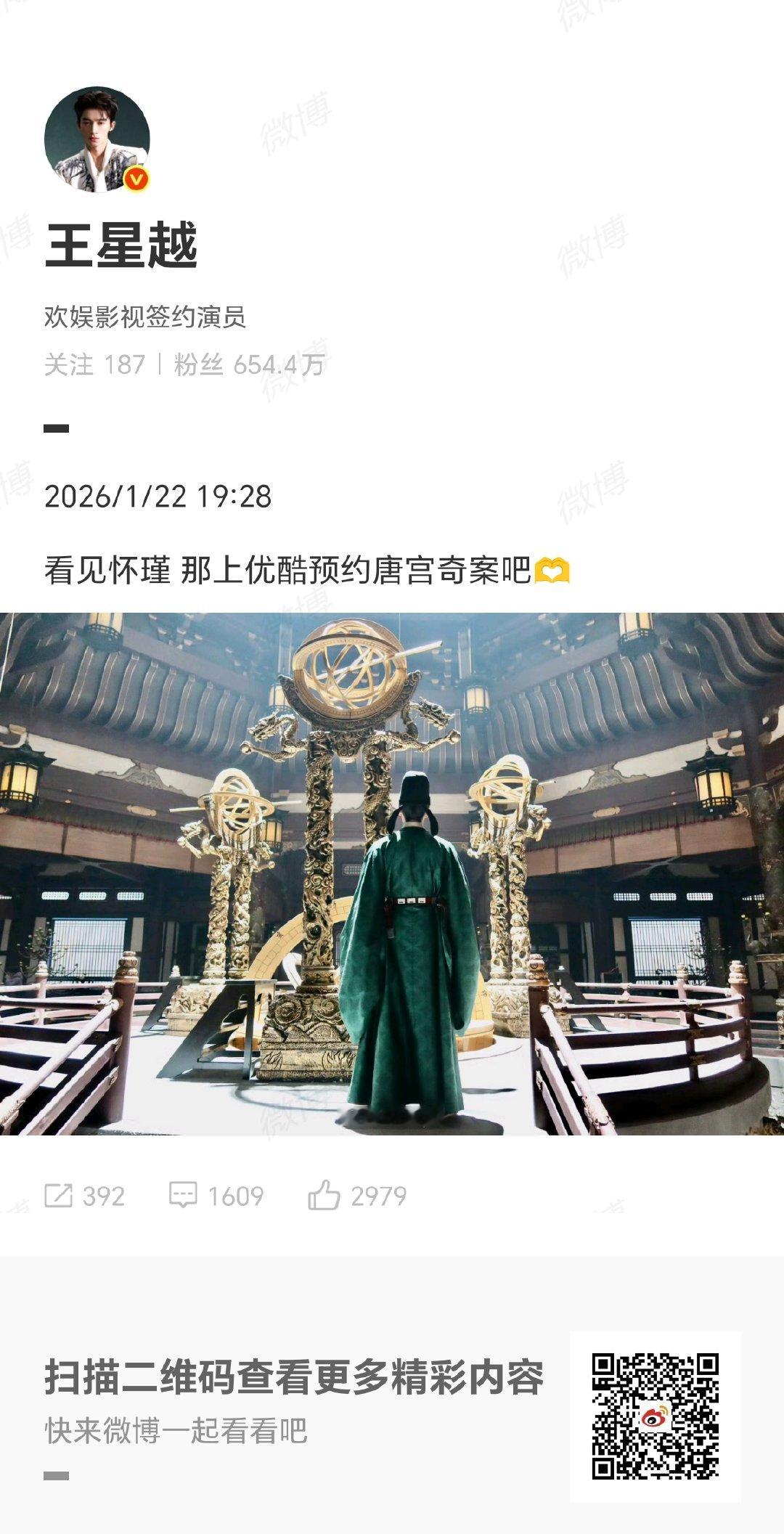 王星越宣传唐宫奇案 王星越晒唐宫奇案剧照 王星越 看见怀瑾 那上优酷预约唐宫奇案吧 ,多多关注新剧吧!