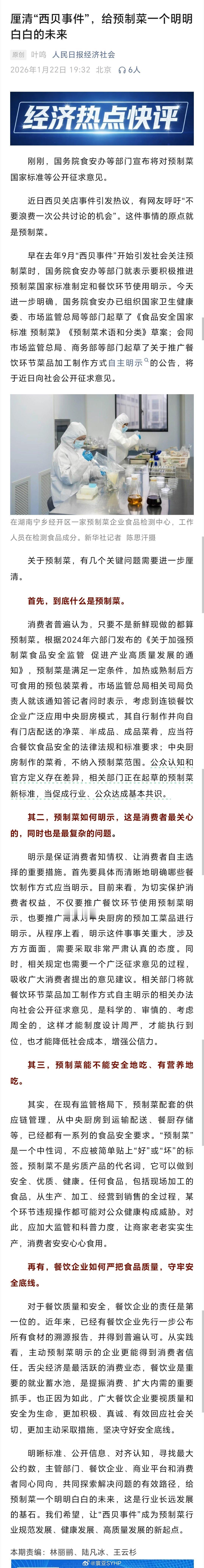 预制菜这几个关键问题需进一步厘清人民日报经济社会:厘清“西贝事件”,给预制菜一个明明白白的未来