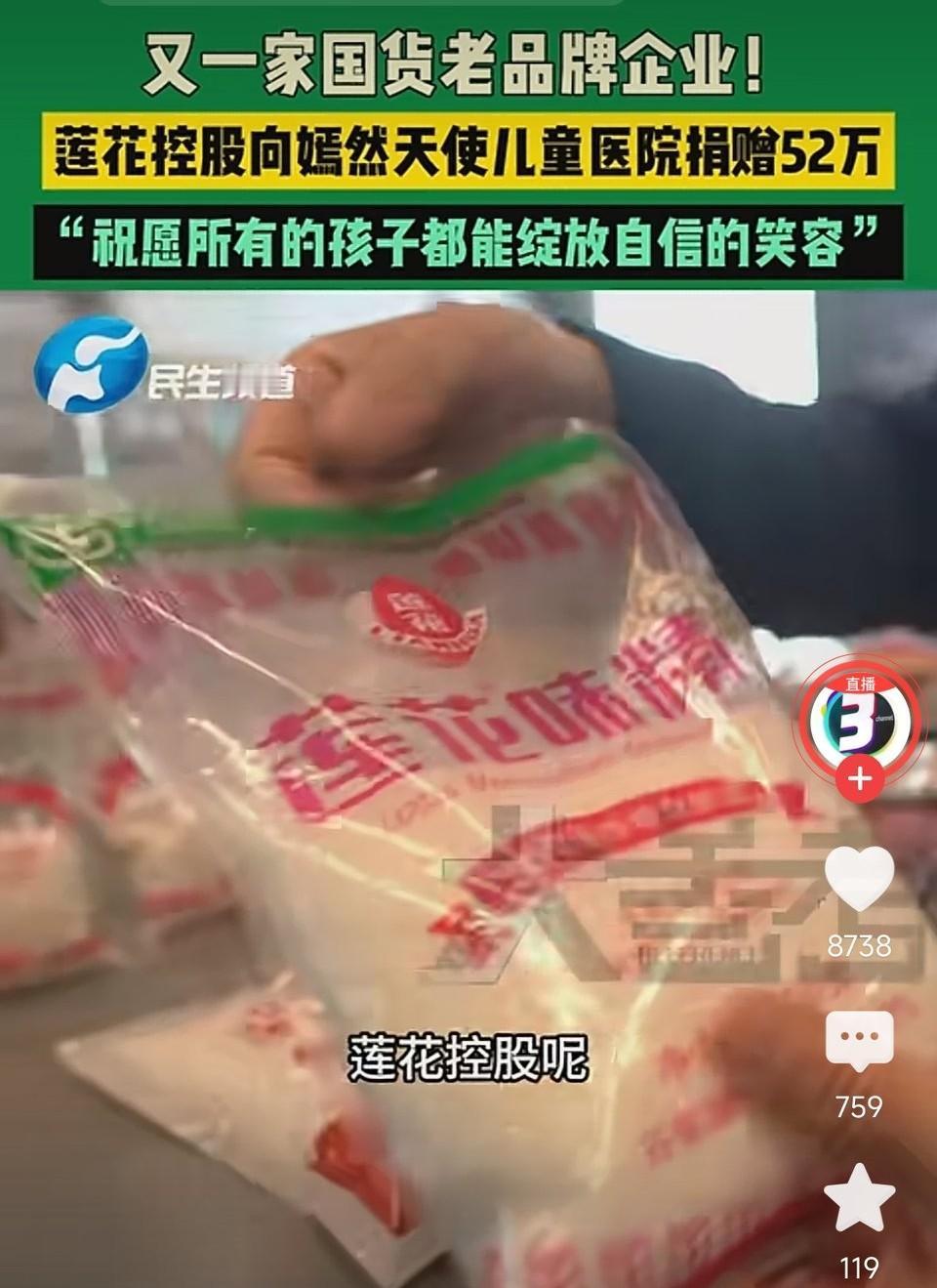 莲花味精向嫣然天使儿童医院捐赠52万,祝愿所有的孩子都能绽放自信的笑容! 国货莲花企业自己都很难了,还捐了52万,他们是一袋一袋卖出来的良心钱,真的很感动! 莲花味精前些年就是被资本打压的,资本说味精不好,要吃鸡精,结果呢?鸡精里面大半都是味精! 支持莲花!四十年国货值得信赖! 公益嫣然基金 嫣然天使公益