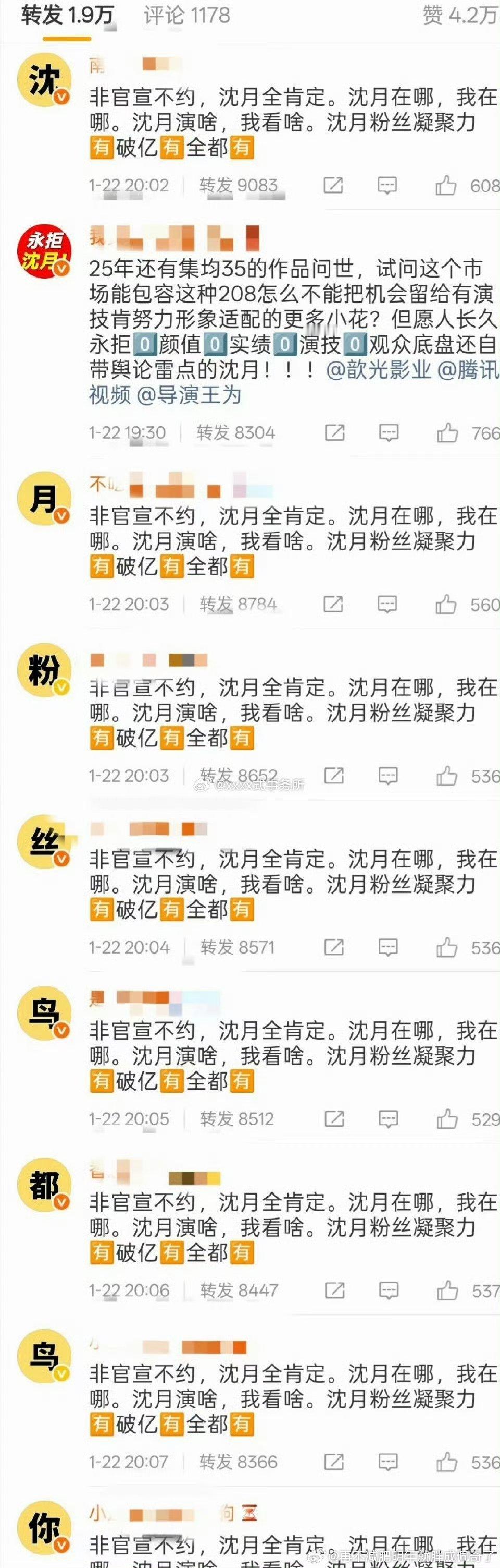 点赞几百的战争哈哈哈但是沈月好歹有小美好,张晚意粉丝脸皮这么厚说人家“0实绩”