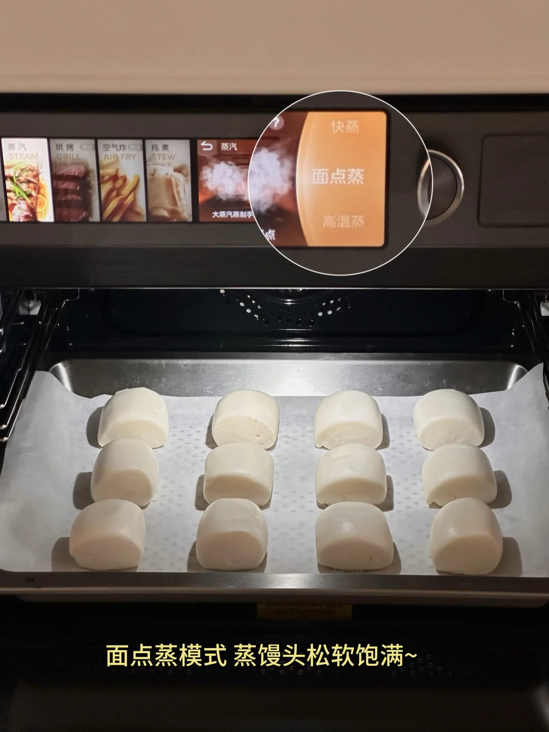 早上蒸个包子馒头,不用早起守蒸锅。它还有专门的面点蒸模式!配上双孔直喷大蒸汽,蒸出来的馒头松松软软,轻按都不回缩,表皮一点不湿哒哒。