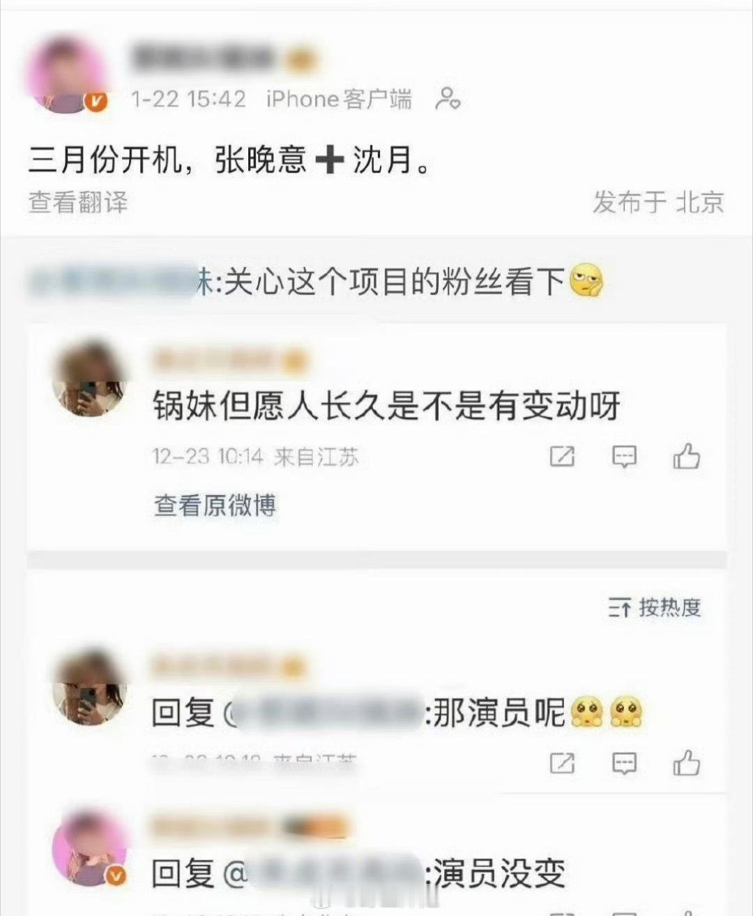 《但愿人长久》这部剧的男女主角定下来是张晚意跟沈月了,所以就算对方粉丝再怎么不愿意搭档,只要正主把本子签了,再闹也没用啊
