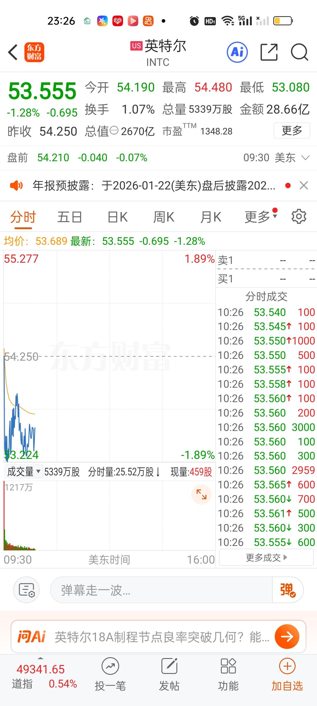 外围数据此刻涨得还是相当不错的。如此可以继续维持,明天行情大概率不会太差。美股存储芯片今天跌的还是比较厉害的。英特尔也是小跌的状态。