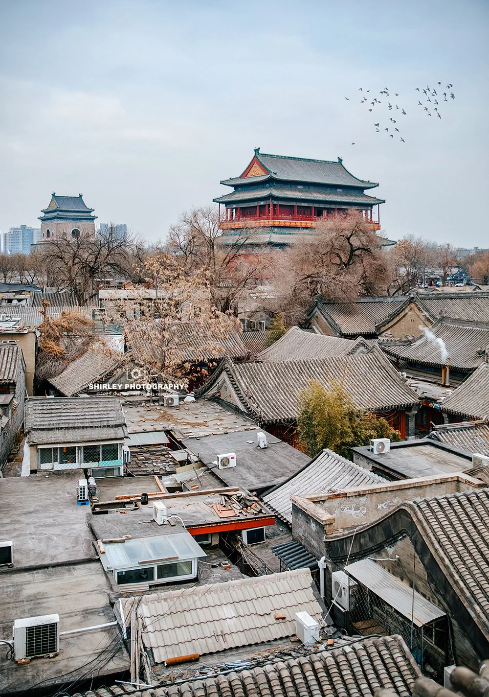 糖房咖啡4楼,层层叠叠的胡同屋檐与巍然屹立的钟鼓楼,市井烟火在这座古都流淌