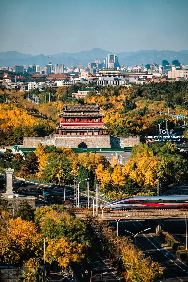站在中轴线的起点,恰逢火车飞驰驶过,古与今,动与静都在一张图里