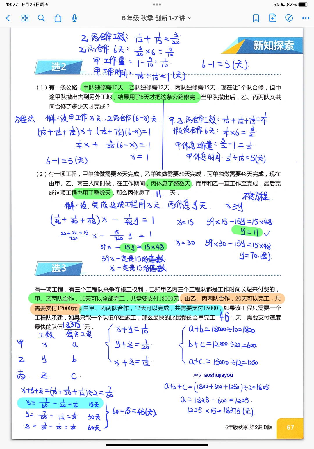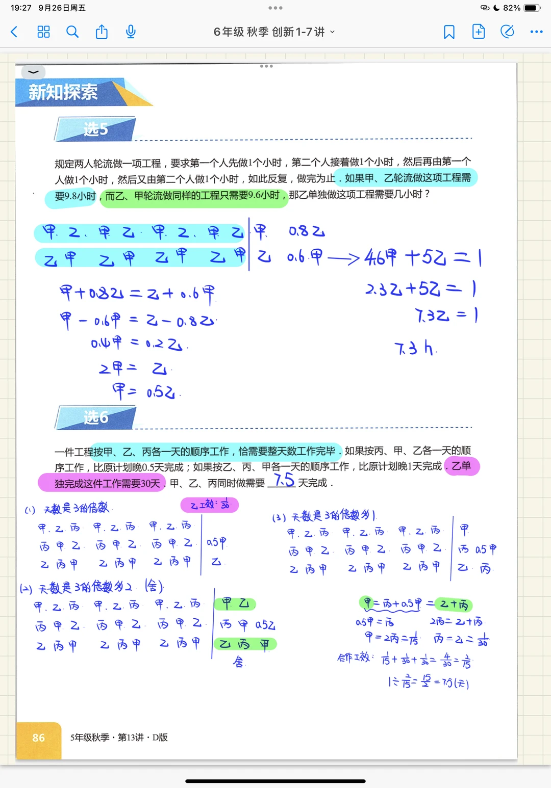 工程应用题综合奥数创新班课堂笔记