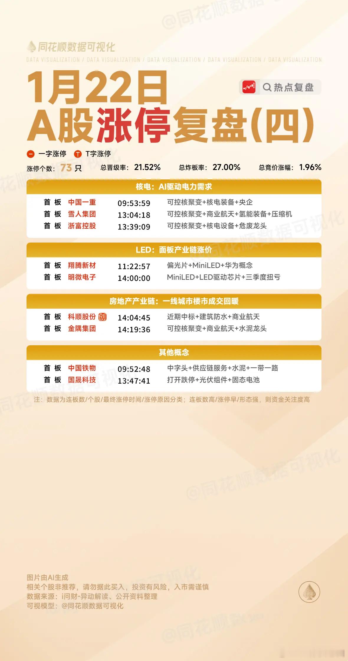 1月22日复盘:国晟科技、白银有色、中国长城、雪人集团、巨力索具隔日走势的一些看