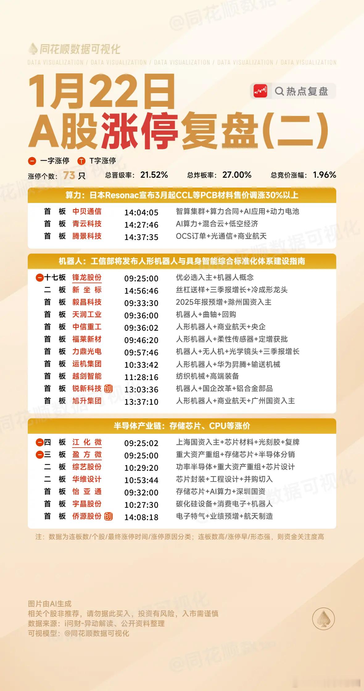 1月22日复盘:国晟科技、白银有色、中国长城、雪人集团、巨力索具隔日走势的一些看法!1、国晟科技(锂电池)国晟连续5个跌停后在今天午后终于迎来了翘板资金,打开跌停后仅用了3分钟就冲击到近涨停位置,在高位横盘释放了足够的抛盘后有资金尝试封板,但是第一封迅速打开,之后下杀过程中整体承接还是非常不错的,最终很快再次出现资金彻底封死涨停,走出了一个连续跌停后的地天板走势!盘后的龙虎榜方正两个杭州席位占据了买盘前两位,其中买二是曾经翘华夏的资金,买一大概率同样是关联资金,这两个席位几乎都是跌停板买入,当日大幅获利,买四这个席位同样也是翘板华夏的资金,同样成本价也是跌停位置附近,其余两个上榜席位成本价同样如此,卖盘上榜资金多为东财席位,单从榜单上看着很强,但是很明显今天的翘板资金就是明显的专业去抄底连续跌停的资金,情绪把握对了就很容易走出超强走势,国晟明显如此,但是这些资金隔日必然是无脑砸,毕竟国晟没有热点支撑,放出流动性后愿意持续接力的资金并不多,所以隔日国晟没有特别大的看点,如果竞价强,或许会给到溢价,但是一旦竞价偏弱,大幅获利资金肯定会无脑砸盘离场!2、白银有色(贵金属)白银期货夜盘是明显下杀表现,所以有色竞价出现明显低开表现,但是开盘后却出现了非常强势的拉升表现,因为白银期货早盘持续低迷,所以在高位并没有资金去承接封板,直到临近11点,白银期货迅速拉升红盘,在A股休盘时持续趋势走强,这也带动了有色午后开盘直接出现资金承接封板,走出了一个非常强势的3连板形态!盘后的龙虎榜买卖盘多为量化资金,是明显量化引导的榜单,而从有色近期的表现看,完全跟白银期货同步,在期货大涨时开始出现第一个涨停,之后的持续性更像是资金推着向上,而它本来应该要弱于盘子更小的湖南的,只不过那一只昨天尾盘有资金砸盘,反而让它成为了龙一,但是它的流通盘是偏大的,这样的持续性很难有持续性,而白银期货这几天整体滞涨也非常明显,所以对于有色来说,隔日大概率就是一个冲高断板的走势!3、中国长城(算力)长城竞价超预期开出一字板,但是整个科技是个明显高开兑现的走势,所以开盘后不久就出现明显资金砸盘兑现,虽然有短暂回封,但是砸盘力量非常大,好在下杀到5个点位置承接明显,之后全天在分时均线下方震荡,虽然有过拉升突破均线的表现,但是很快出现下杀,尾盘阶段出现资金强势做多,特别是竞价出现明显抢筹,最终抢筹到近涨停板收盘!长城最终正好控住了3个交易日偏离值20%的异动,再加上尾盘的抢筹形态,隔日走出冲高是大概率的,这只个股毕竟刚启动没多久,因为它流通盘偏大,在现阶段这个市场环境下更多的可能会是趋势上行,所以对于长城来说,隔日想要反包可能有难度,但是走出大幅冲高可能是大概率的!4、雪人集团(核电)今天商业航天相关方向修复明显,雪人也是一个高开后趋势上行的表现,午后有资金强势承接上板,并且很好的封死涨停!盘后的龙虎榜城管希买入1.5亿,吴航路这个雪人老庄席位买入8千万,其余上榜资金有外资、量化和机构,卖盘做T机构居多,这样的榜单是明显的情绪引导资金去做多封板,而且雪人这一波回调下来也比较充分,这个放量涨停形态还是非常漂亮的,再加上这只个股股性非常好,隔日出现资金承接做多概率非常大,一旦竞价有比较强的表现,雪人是隔日可以重点关注的1进2方向个股!5、巨力索具(商业航天)商业航天竞价阶段就出现了明显修复,巨力竞价最后阶段出现明显跳空抢筹,高开5个多点的情况下迅速出现资金承接封板,在板上小幅分歧放量后很快彻底封死涨停,走出了一个非常强势的二板形态!巨力作为商业航天唯一二板个股优势是非常明显的,毕竟今天整个板块高潮后,它就是妥妥的龙一了,隔日就算板块分歧,它也是最可能出现资金去主动承接的个股,而且它这一波回调下来量能释放的也非常充分,所以隔日巨力走出连板的概率是非常大的,而且它流通市值在现阶段是比较适合炒作的,它预期就是比今天更强的竞价高开秒板或者直接一字板,而一旦商业航天出现明显分歧,它或许会在盘中完成放量后再去彻底封死涨停,所以这只个股是隔日商业航天最值得关注的个股!本文只限于分享和交流,不构成投资建议,股市有风险,投资需谨慎!