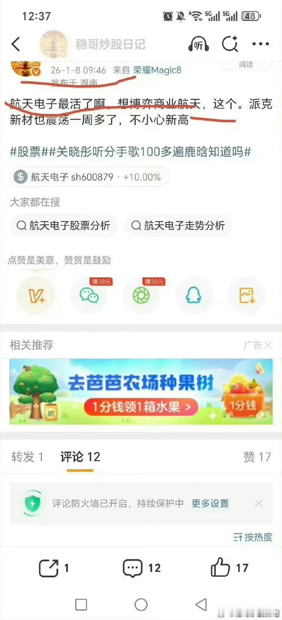 大家每条微博都转发评论点赞,我才有更大动力去免费分享!!!金粉了,联系我哈!!真爱粉嘉宾!然后每个月互动三四千就一直在真爱粉群里!!最近一个月多福利提的太多了,无敌的国投白银lof,平潭发展,航天发展,嘉美转债。。都是低位提!低位的卫星etf,航天电子那些黄金关晓彤听分手歌100多遍鹿晗知道吗