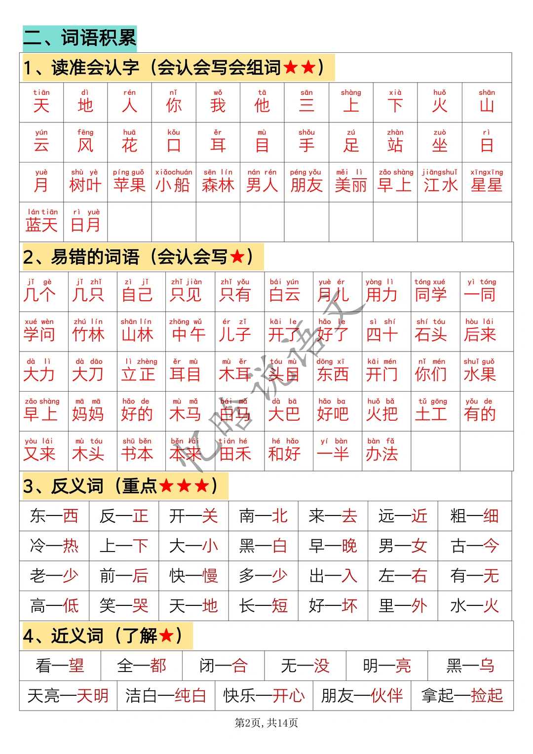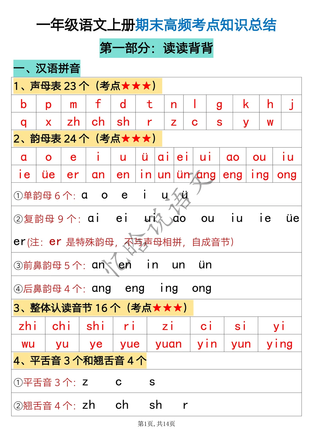 一年级语文上册 一年级语文重点 小学语文 期末复习资料 忆晗说语文 期末复习重点 语文学习 小学学习资料 必背知识点 知识点总结