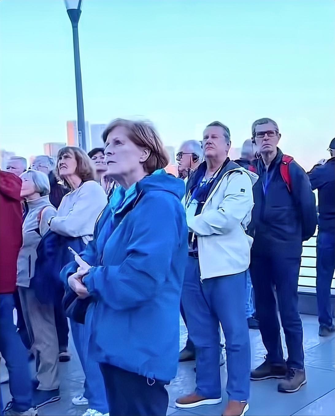 外国游客在外滩表情凝重。我觉得可能是外滩的景象太震撼,让他们一时反应不过来,表情都凝固了。当走到和平饭店那块,东方明珠突然映入眼帘,那场景冲击感十足。想象下,他们原本习惯了自己国家的城市风貌,一下子看到上海外滩这般繁华璀璨,高楼大厦林立,灯光绚丽夺目,黄浦江波光粼粼,这种视觉和氛围的冲击,估计让他们内心五味杂陈,才会表情凝重,心里大概还在感慨中国发展,自以为是的优越感荡然无存。