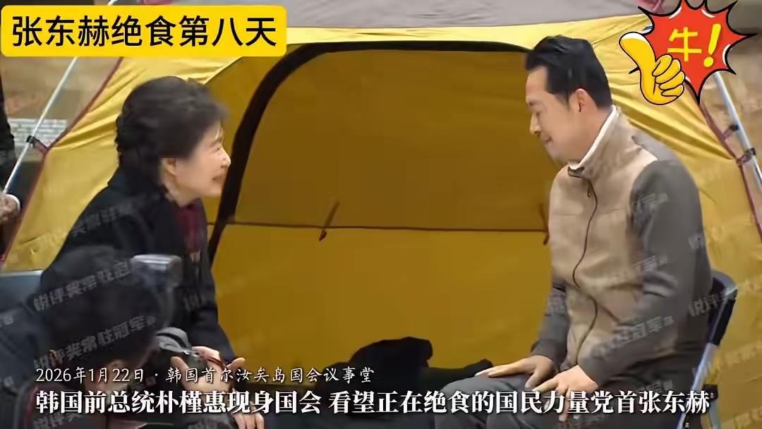 韩国政坛比韩国电视剧还好看,都是在演戏。 当初李在明为了反对尹锡悦的政策,进行了绝食24天,韩国前总统文在寅在李在明绝食19天时处于昏迷送往了医院,第二天亲自去医院看望李在明,叮嘱他为了韩国,一定要保重身体,做好长期战斗的准备,李在明凭借绝食,上演了逆袭,成功进入青瓦台。 如今的张东赫,复制了李在明的做法,进行了绝食,前总统朴槿惠亲自去现场劝解,为了韩国要保重身体,这是张东赫绝食第八天,是不是朴槿惠去早了点。 同样的剧情,只是换了个位置,曾经的配角当上了主演,如今又出了个配角想去把主角顶替。 当初李在明绝食,是有天、时、地、利都倾向了他,而如今,张东赫绝食,基本上都不占,要把李在明拉下位,还是很难,有可能等李在明卸任后,有可能被清算,但现在时机没对。 从演戏的角度看,张东赫差李在明还是有一定距离,之前李在明是上过综艺,很有演员天赋,张东赫不是李在明的对手。