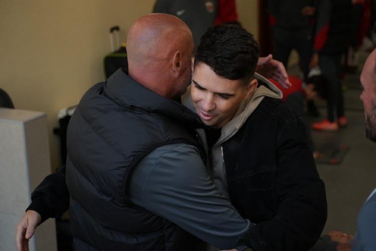 据海港新闻官赵昊晨社媒消息,前海港外援奥斯卡赛前来到海港在卡塔尔的驻地探班,并现场观看了与泽尼特的热身赛。