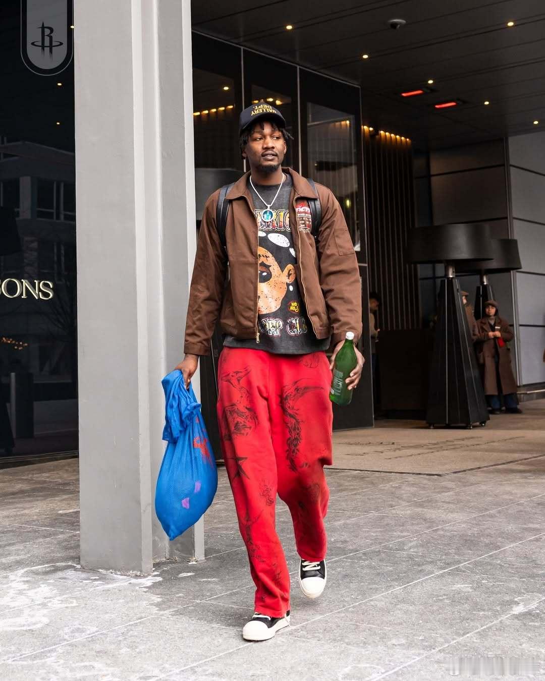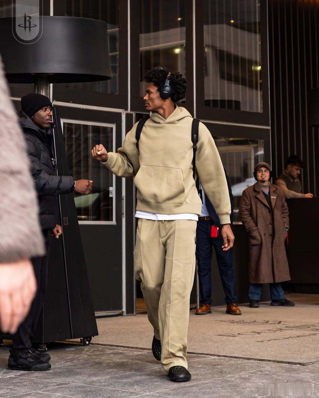 男模酒店出发去球馆,泰特JD大红大紫休斯顿火箭火箭vs76人