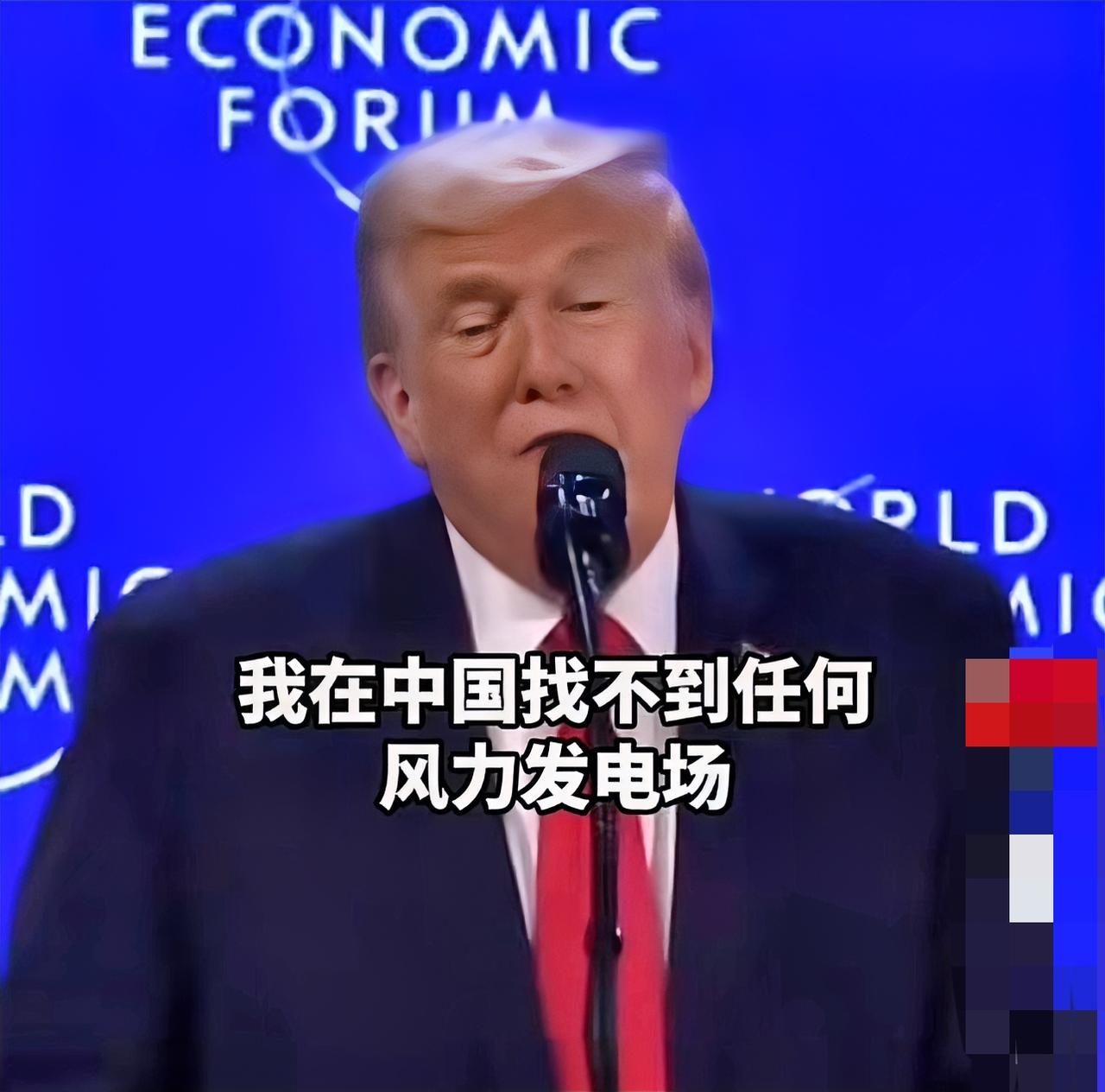 特朗普在达沃斯演讲时一本正经地声称:中国没有风力发电场。 这可太离谱了,中国在风力发电领域那是妥妥的世界领先。 截至目前,中国风电装机容量稳居全球第一,海上风电新增装机容量连续多年领跑世界。 像甘肃的瓜州,那可是“世界风库”,成片的风力发电机就像巨大的银色卫士。 特朗普这么说,要么是对中国发展一无所知,要么就是故意睁眼说瞎话,也不知道他是咋想的? 特朗普历来喜欢信口开河,全世界早已经都习惯了他的做派,他自己从来不觉得尴尬。