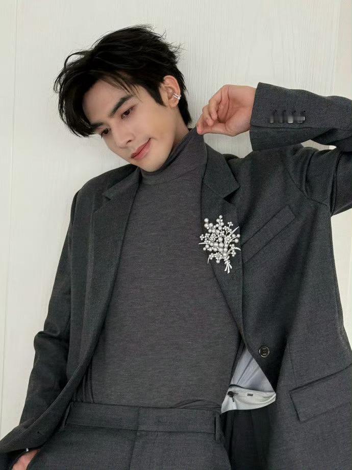 龙龙这波灰色系造型直接封神珍珠配饰一搭矜贵感拉满,行走的贵公子本公子没错了帅到心