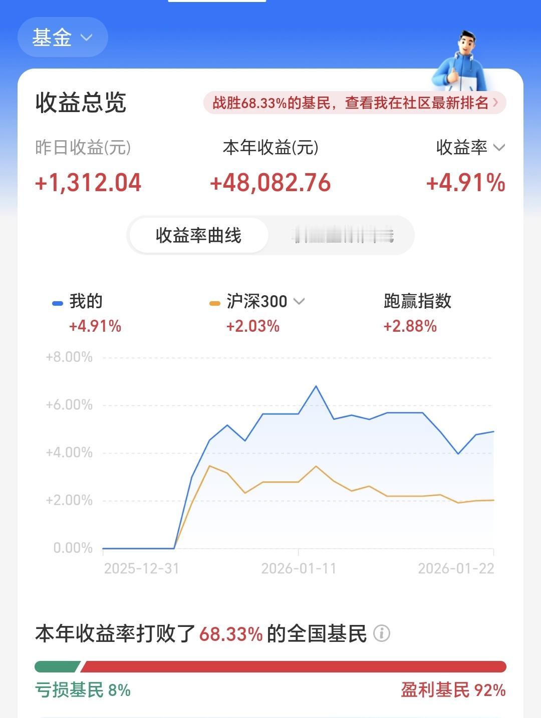 基金:创新药板块昨天不进场的原因 昨天基金收益1312元,基金持有1026559元,现金持有933543元,现金收益26元,资产总额1960102元。 今年以来收益48082元,收益率4.91%,跑赢了全国68.33%的基民,也跑赢了沪深300指数2.03%的上涨幅度,今年以来,亏损基民8%,盈利基民92%,今年以来竟然有8%的基民亏损,真的是不可思议。 昨天晚上,欧美市场普涨,上涨幅度都不是很大,今天我们的阻力位置4135点,支撑位置4100点,如果在这两个点位区间震荡,就还是继续横盘震荡的走势,如果突破4135点,近期还有再创新高的可能性,如果跌破4100点,震荡调整会继续。 昨天考虑捞回创新药板块的基金,但最后并没有动手,主要原因是昨天收的阴线没有下影线,如果昨天是带有长下影线的K线,就可以考虑进场,如果昨天收的是中大阳线,也是可以考虑进场,这就是许多人想不通的地方,为什么大涨了可以进场,而大跌了没有进场,怎么会跌了不进场,而涨了反而进场的,这是因为底部区域的长下影线和底部区域的中大阳线是止跌信号,而不带长下影线的中大阴线,表明后面还会有继续下跌,当然,这也只是大概率,但我们能做的就是按照大概率来办。 谢谢大家的评论,点赞,转发和分享,谢谢大家。