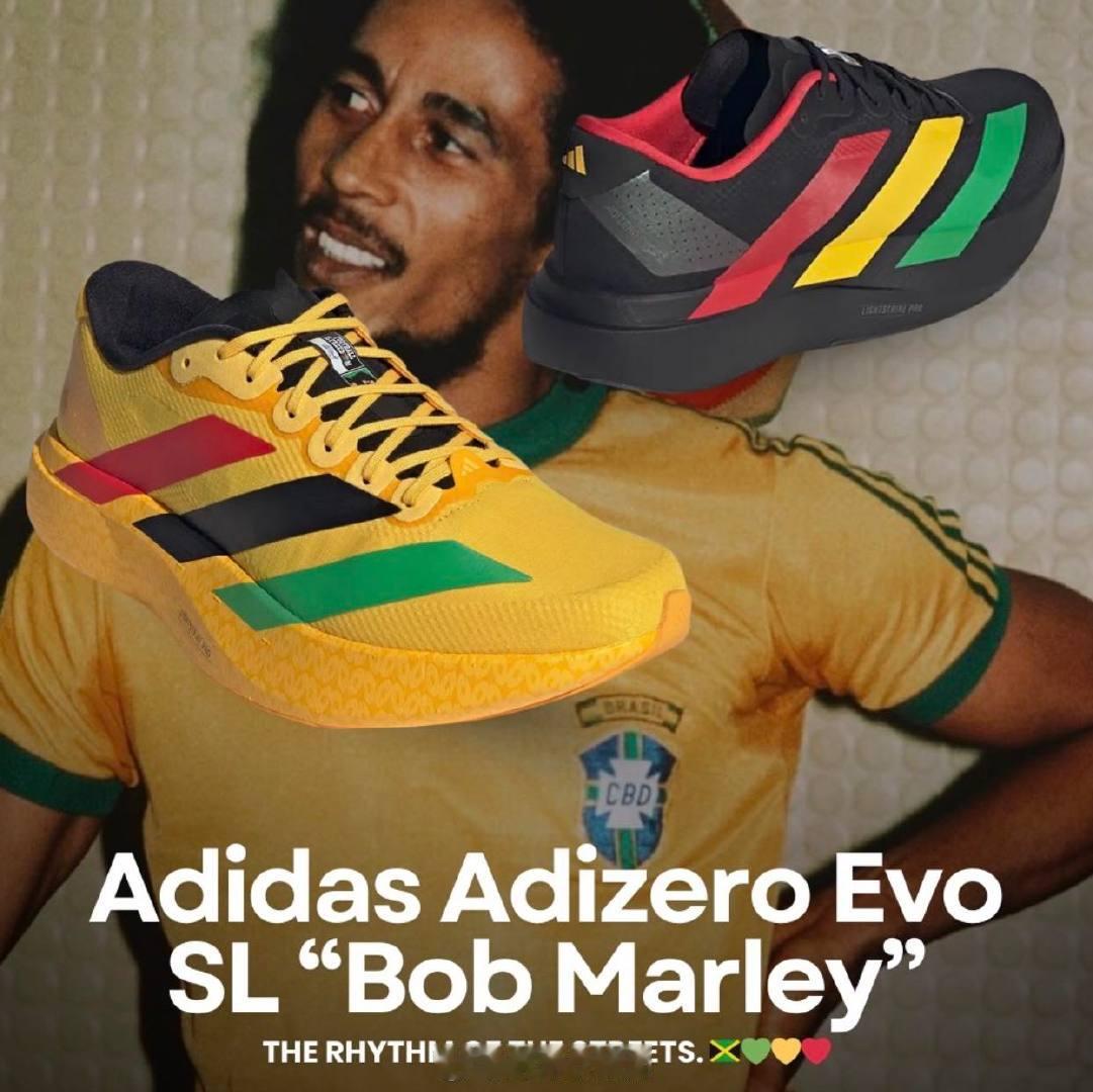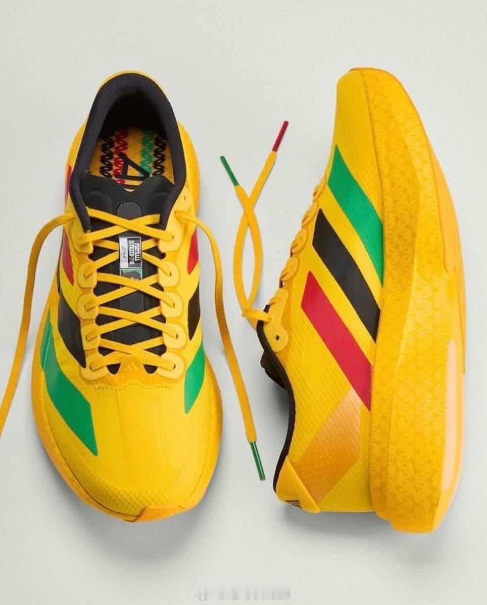喜欢雷鬼音乐的来看,Bob Marley 版本的阿迪达斯 adidas adizero Evo SL woven。黄黑两款,还特别容易穿搭了。阿迪达斯 雷鬼 跑鞋
