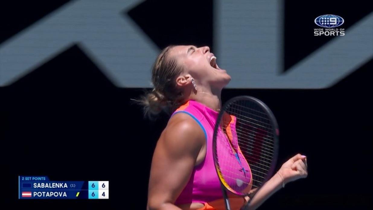 萨巴伦卡大满贯抢7惊人的18连胜自2023年法网到今天面对波塔波娃的第一盘抢7,