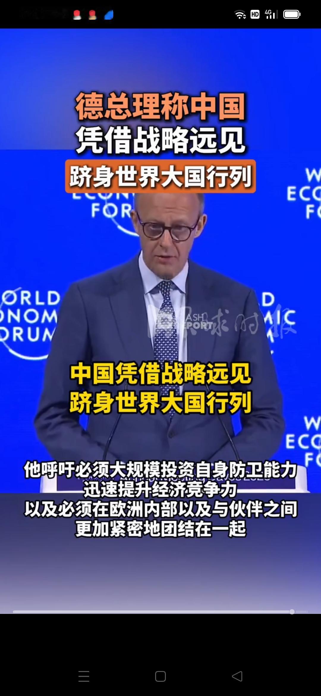 默茨达沃斯猛夸中国战略远见,藏着欧洲的清醒与焦虑。 德国总理默茨1月22日在