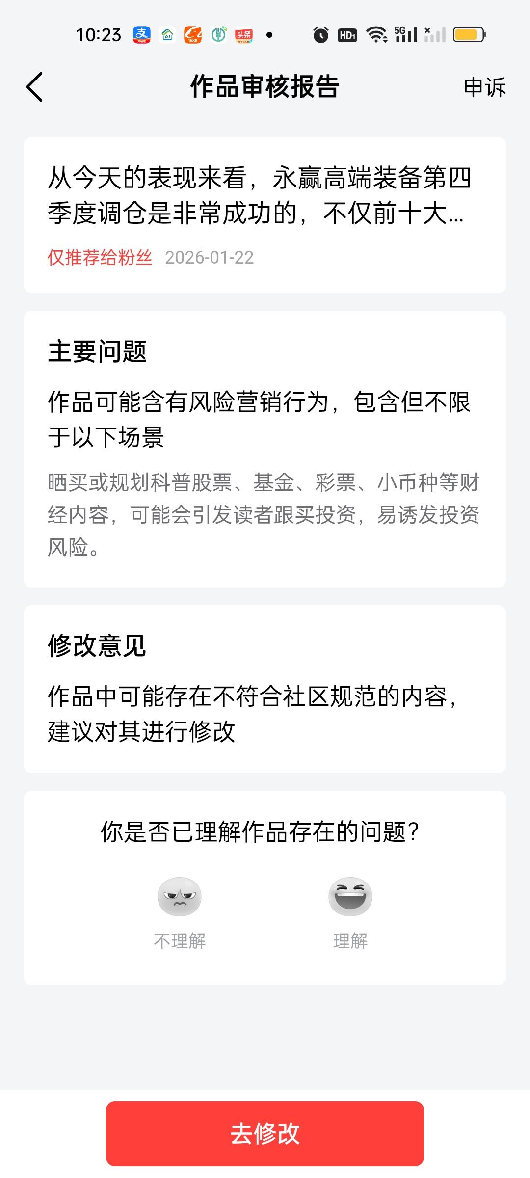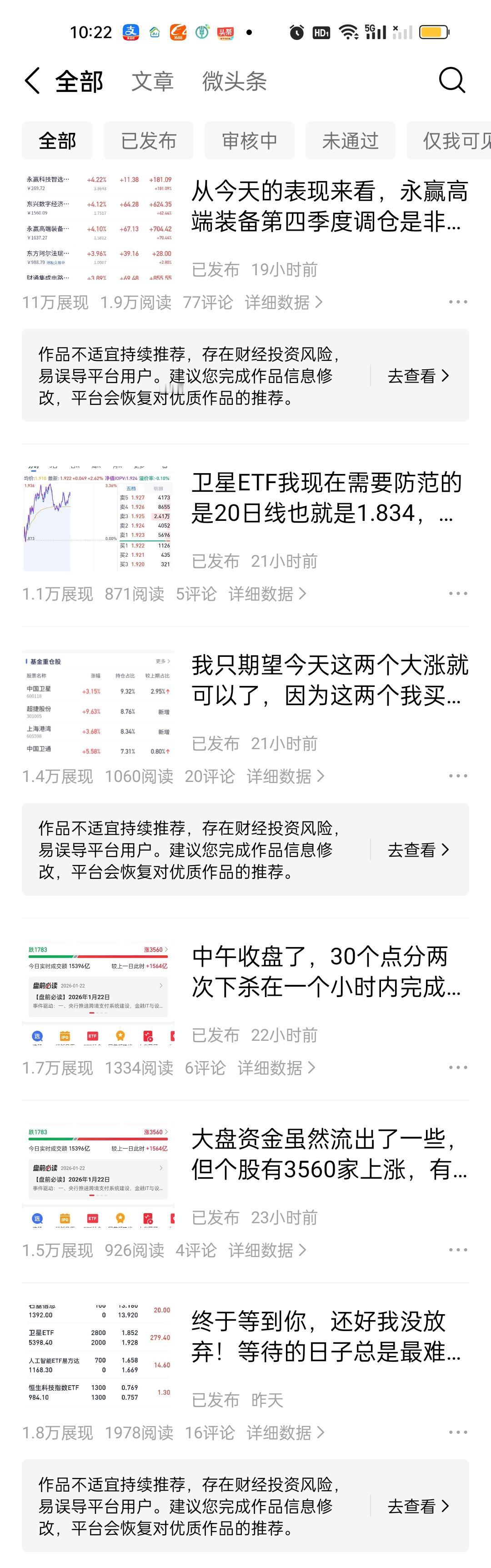 大家可能不知道,我每天收到的警告多如牛毛,有时候1天就有三四篇,写来写去我都不知道写什么好了,我就分析了一下永赢高端装备智选的持仓,以及调进调出了哪些股票,警告就发来了。我也不知道哪些内容是可以写的,哪些内容是不能写的。这不能写那不能写,我太难了!很难坚持写下去了!