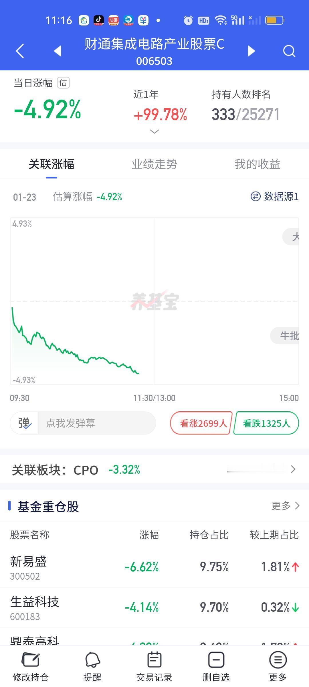 一边是商航的暴力拉升,一边是CPO的疯狂下杀。一时之间我竟然不知道如何应对。一来我怕商航还没有调整到位,今天拉的这么高应该是减仓机会而不是加仓机会。二来,我又犹豫减了会不会接不回来。 很明显大盘这里的压力是客观存在的,也就是说单日百点下杀随时都会来,有人说你不要再这里危言耸听,我只想问问你,单日百点爆杀你能不能扛得住?你难道还没有发现现在大盘动不动就是短时间内三四十个点的急速下杀吗?这种下杀越来越频繁,不是每次都能拉起来的。