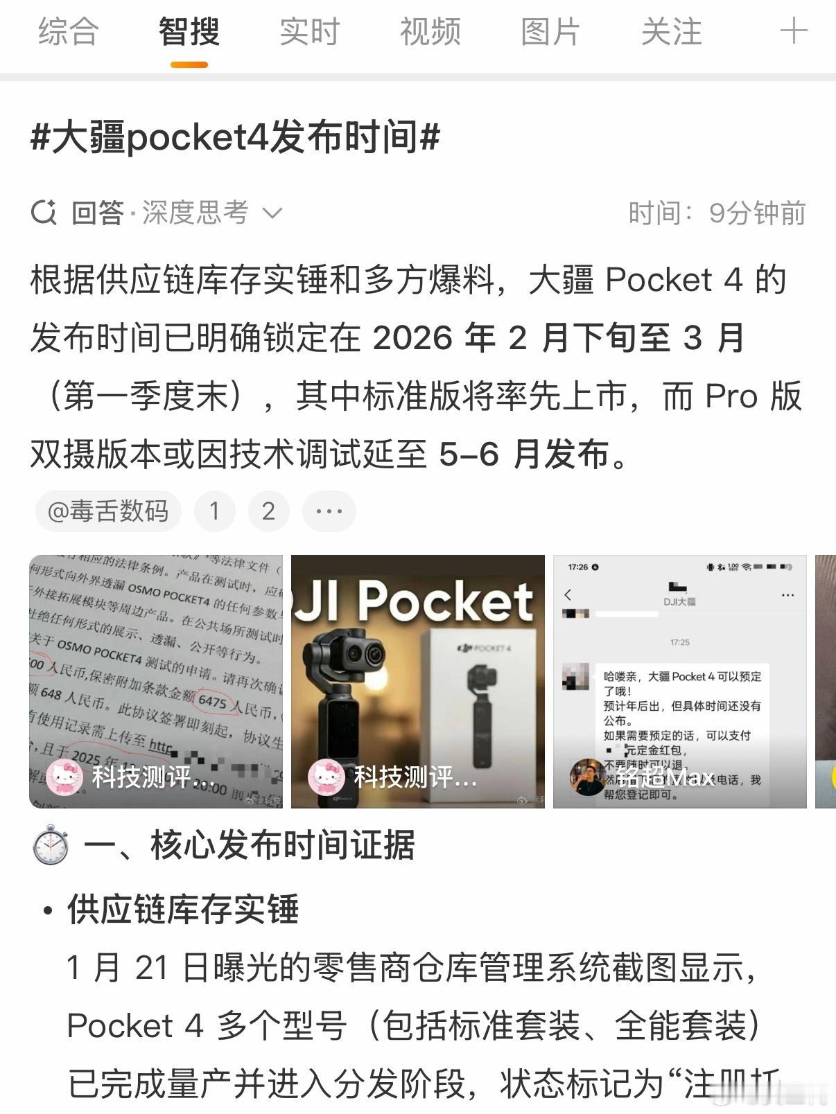 大疆pocket4发布时间Pocket4会在2月下旬到3月发布,数码圈的时尚单