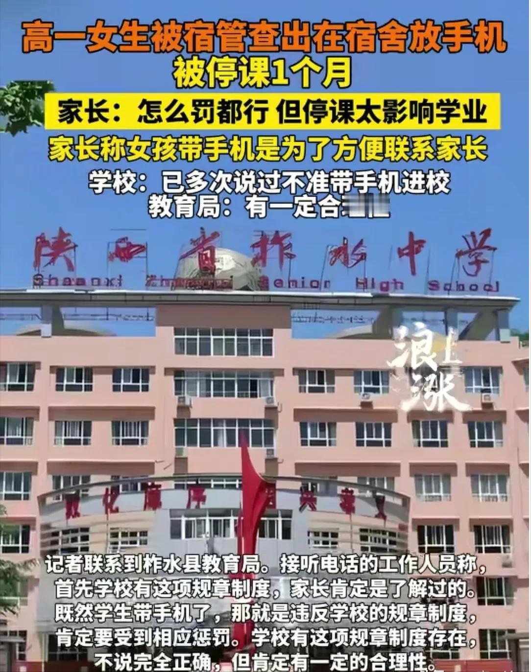 陕西,高一学生带手机去学校,结果被学校停课一个月,家长不乐意了,认为停课时间太长