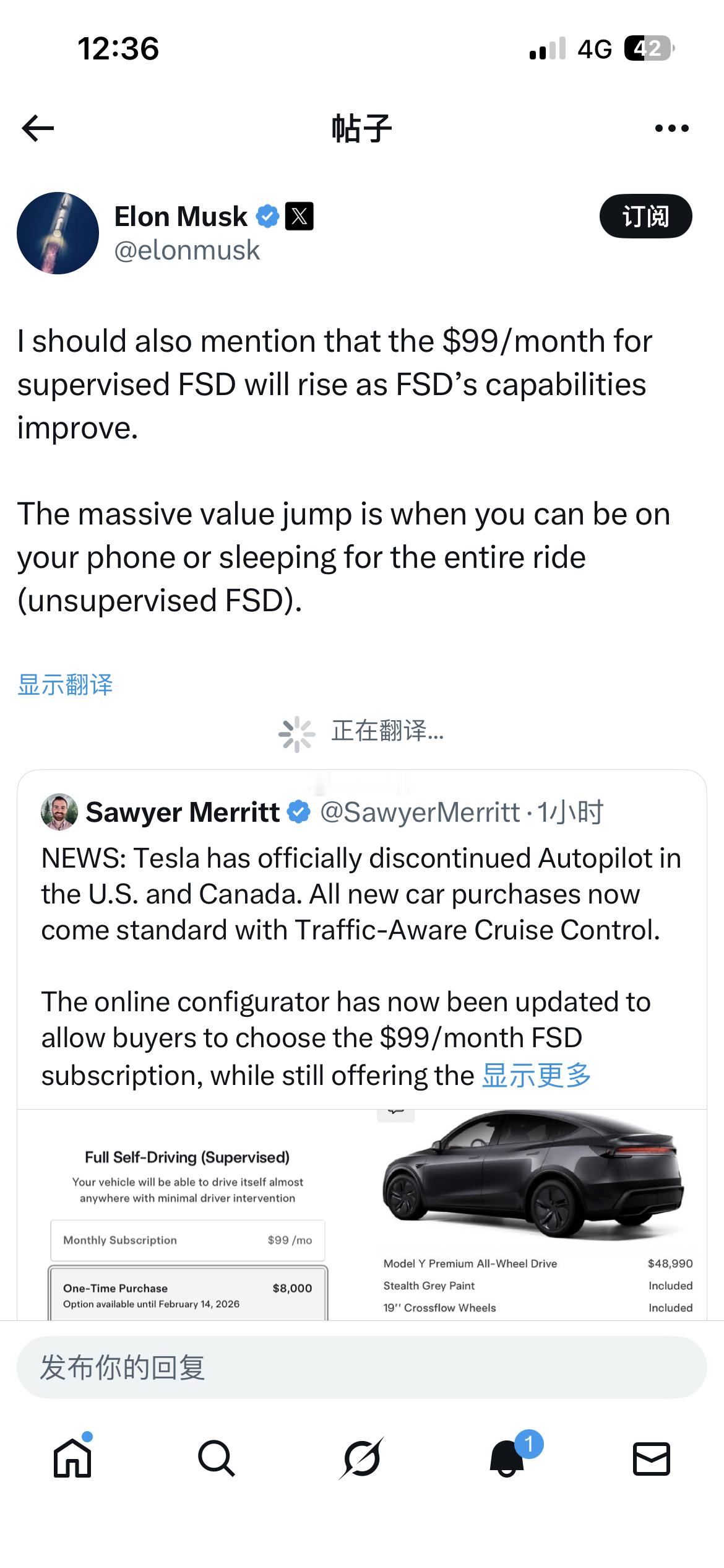 新闻:特斯拉已正式在美国和加拿大停止提供自动驾驶功能。所有新车均标配交通感知巡航控制系统。在线配置器现已更新,允许买家选择每月 99 美元的 FSD 订阅服务,同时在 2 月 14 日之前仍提供以 8,000 美元的价格直接购买 FSD 的选项。购买特斯拉新车仍可享受 30 天 FSD(监督驾驶)免费试用。