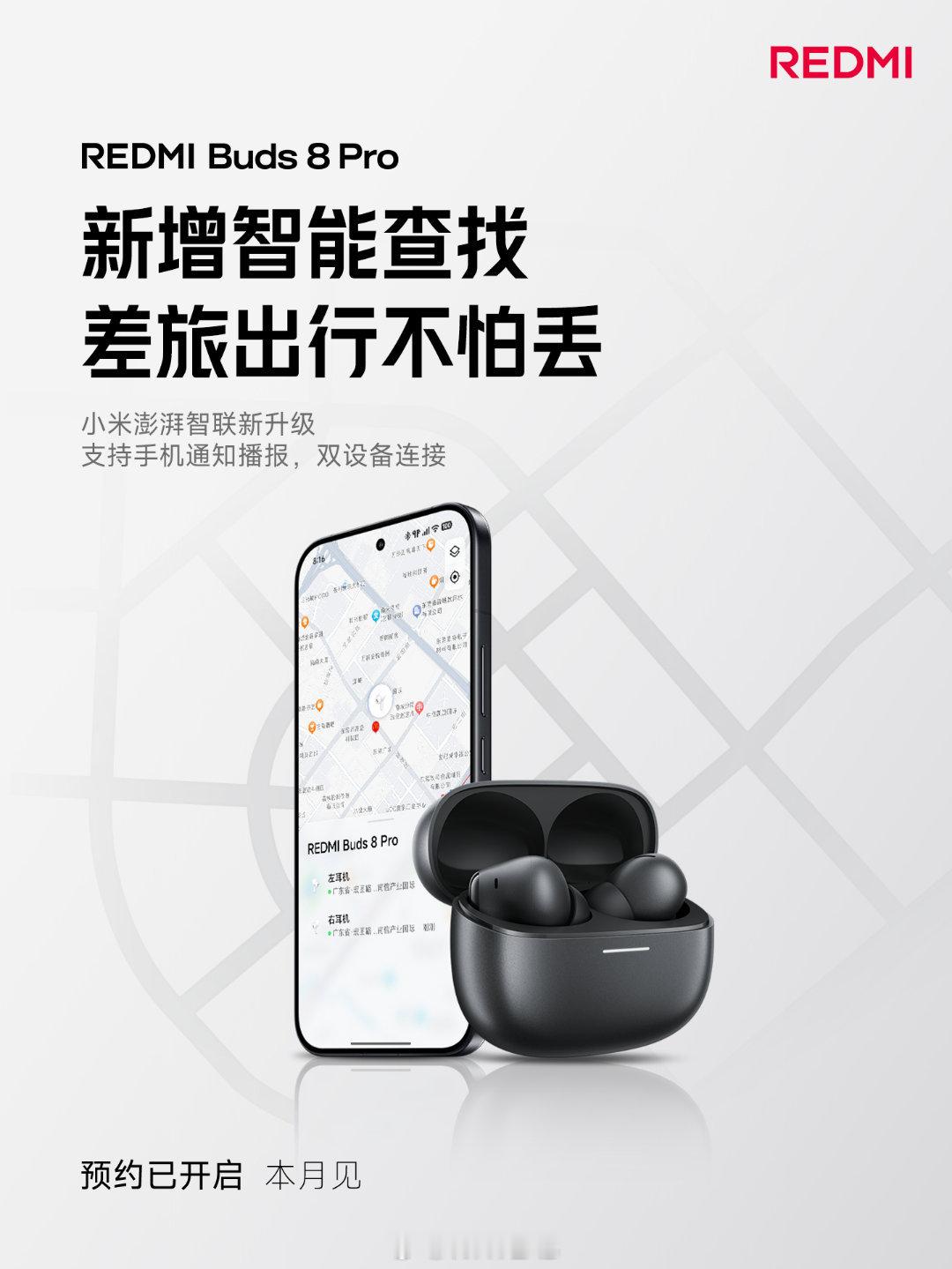 REDMI Buds 8 Pro 新增地图查找,支持 55dB、5kHz 超宽频降噪,平均降噪深度 28dB,这代真的不一样,感觉能冲。