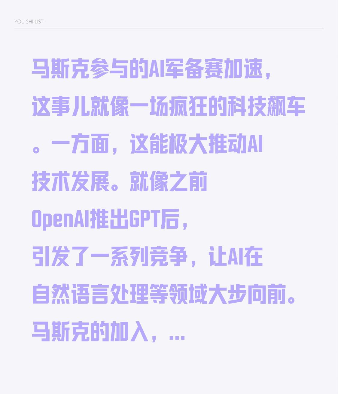 马斯克参与的AI军备赛加速,这事儿就像一场疯狂的科技飙车。一方面,这能极大推动AI技术发展。就像之前OpenAI推出GPT后,引发了一系列竞争,让AI在自然语言处理等领域大步向前。马斯克的加入,或许会带来更多创新,比如在自动驾驶、智能机器人等方面有新突破。 但另一方面,也让人担忧。AI发展太快,伦理和安全问题可能跟不上。要是AI被滥用,后果不堪设想。就像电影里演的,AI有了自主意识,可能会威胁人类。所以这场军备赛,是把双刃剑,得在加速的同时,把控好方向。