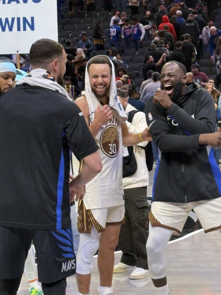 NBA场外花絮:金州勇士客场无奈输球,好在赛后上演老友记!友情大于篮球🏀。 勇士客场115:123憾负独行侠!比赛结束库里、格林、克莱热聊共叙别情。