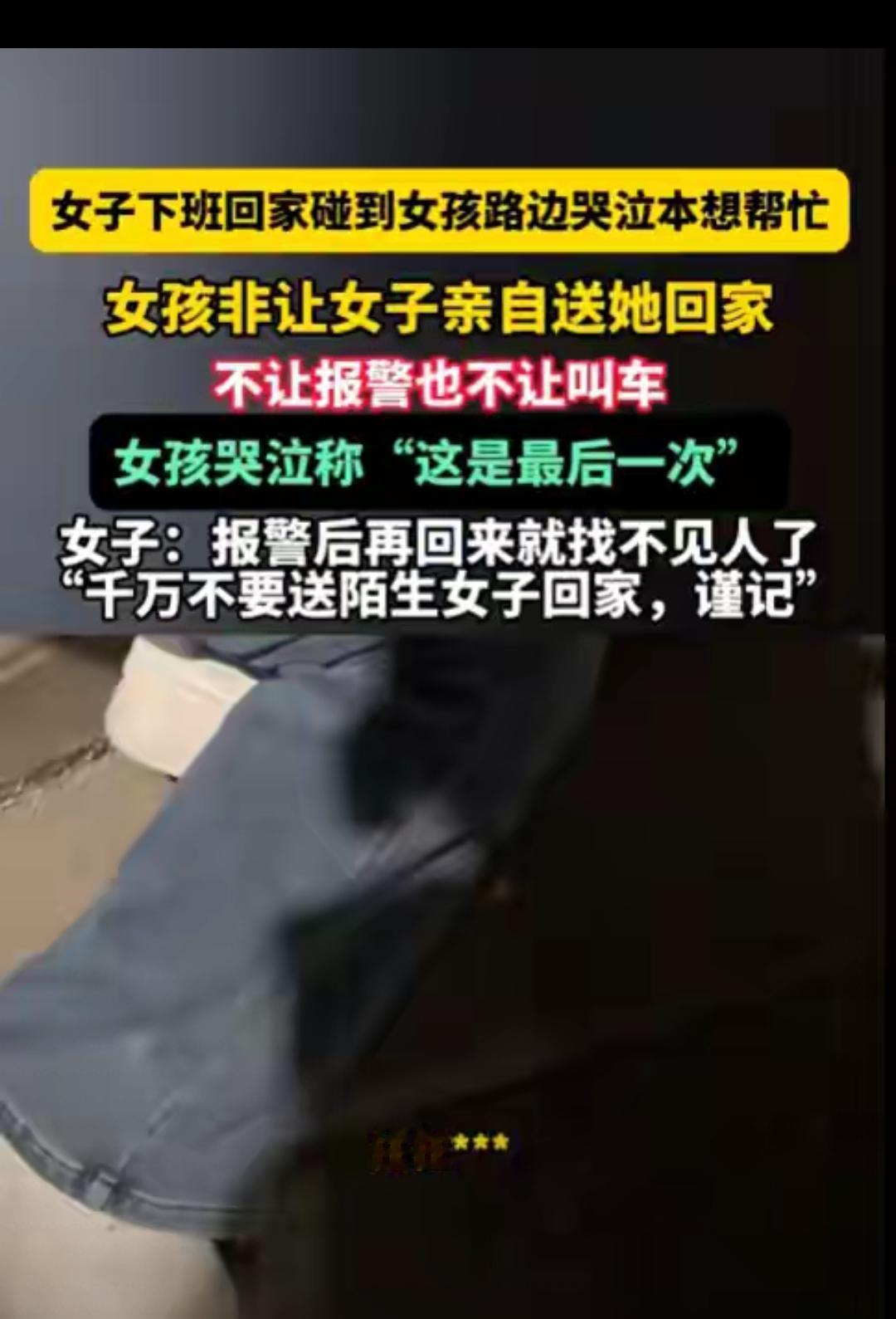 细思极恐!江苏女子的一次善意,竟撞见了最反常的求助陷阱!好心帮人本是好事,但陌生人的反常要求,绝对是保命的重要警示,心软一步可能就踏入了未知的危险。晚上九点多女子偶遇路边哭泣的女孩,好心想帮着打电话、报警或叫车,结果全被女孩拒绝,只执意要女子亲自送回家,还念叨着“最后一次”,这一系列操作完全不合常理。真正身处困境的人,只会盼着警方或正规途径的帮助,哪会拒绝所有安全选项,只揪着一个陌生人不放?女子的果断报警太明智,可转身的功夫女孩就消失,这显然不是单纯的求助,更像是有预谋的试探。善良从来都不是错,但没底线的善良就是对自己的不负责任,面对陌生人的求助,先守好自己的安全底线,才是最该有的清醒。你遇到过这种反常的陌生人求助吗?