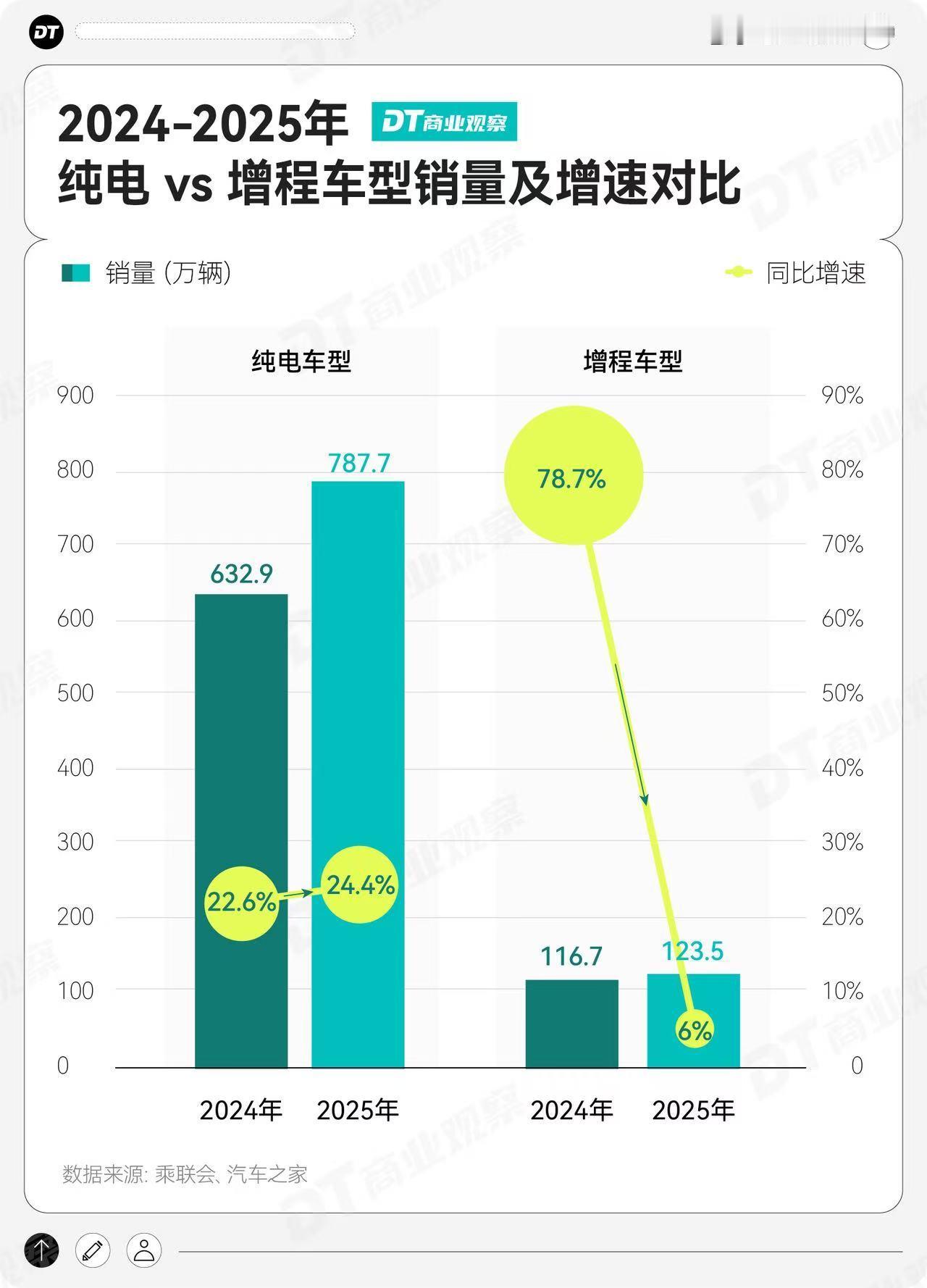上海车主半年做表选车2025纯电销量碾压增程 增程车增速从78.7%跳水至6%,纯电以24.4%增速一路领跑,销量超增程6倍之多。昔日“闭眼入”的增程遇冷,纯电成购车新主流,这波市场反转你怎么看?