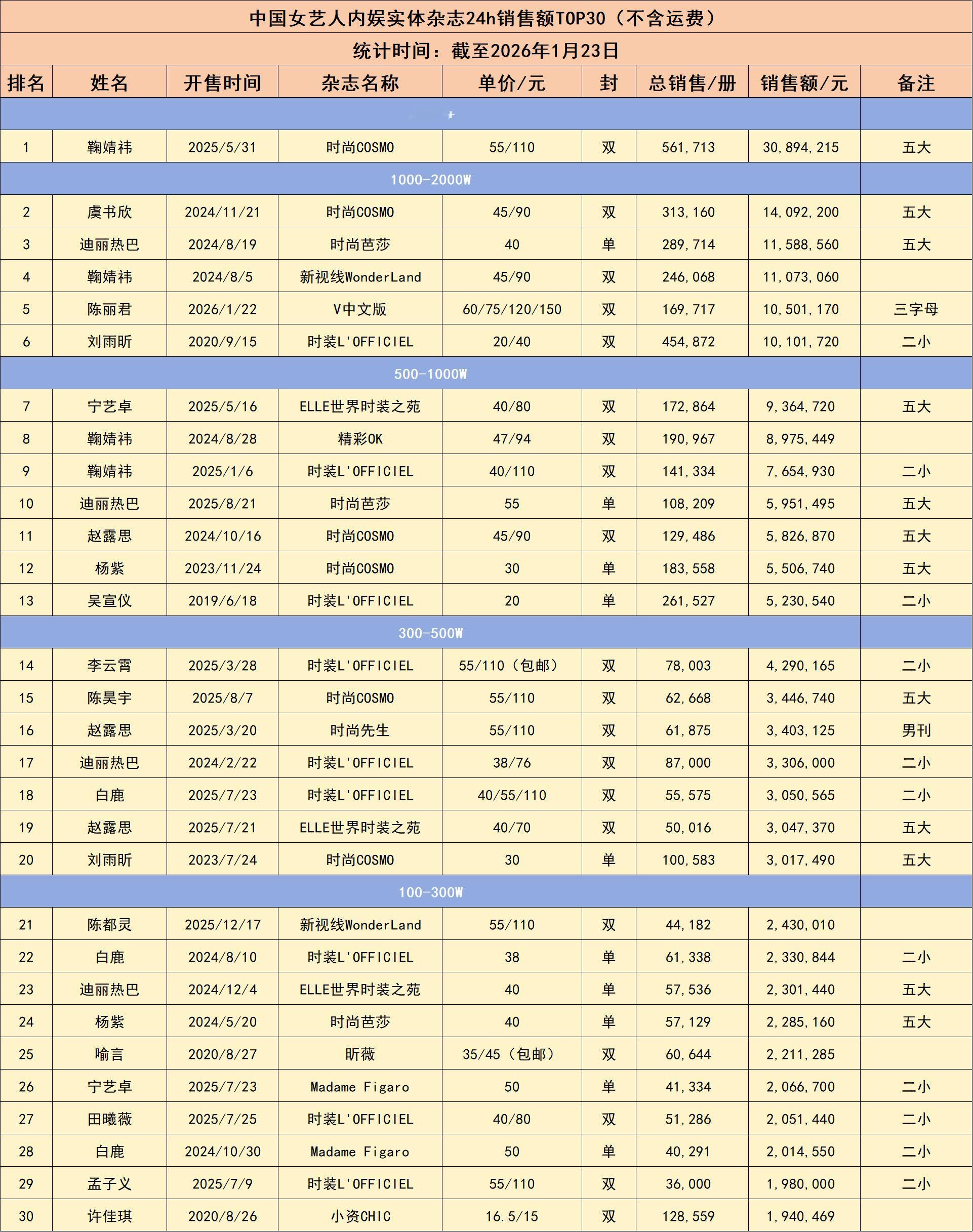 恭喜春节档电影《镖人》女主陈丽君首本主流女刊杂志销售额破一千万💫