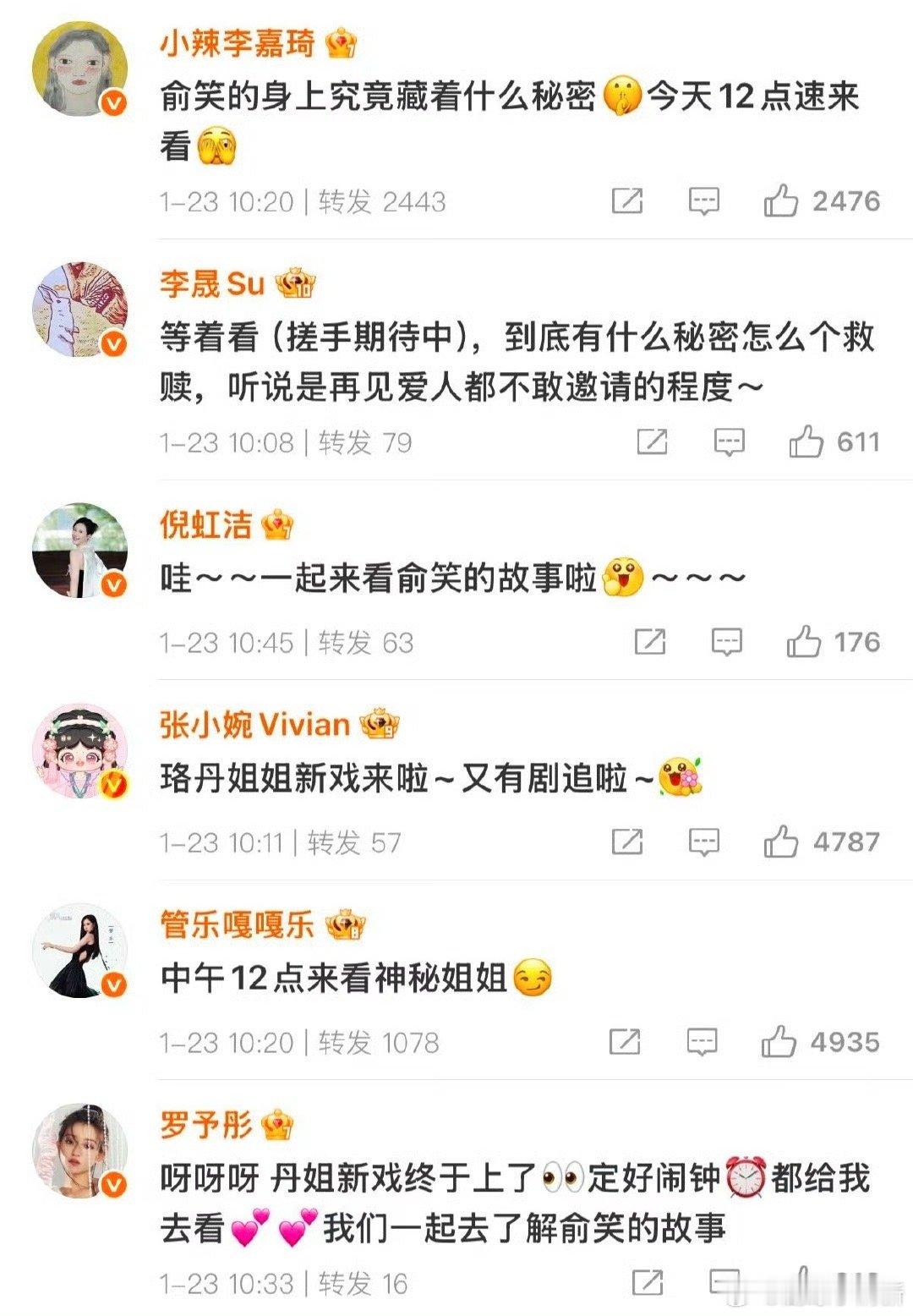 浪姐6在王珞丹评论区团建 王珞丹的评论区成了浪姐精神的实体展厅!当姐姐们用最鲜活的语言为新剧造势,她们完成的不仅是宣传任务,更是一场关于“女性情谊如何抵抗娱乐工业异化”的完美公演——看,我们既能battle也能抱团。