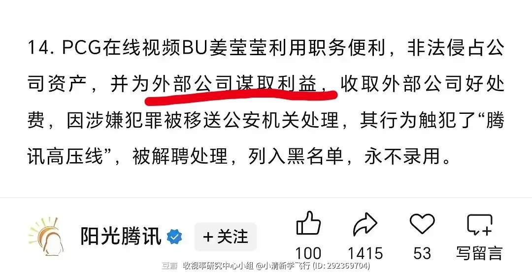 鹅的反腐大戏制片人姜莹莹为外部公司谋取利益收取好处费外部公司好难猜,杨晓培后面那么多剧还开么?继续开只能说内娱影视业没救了,烂到根上
