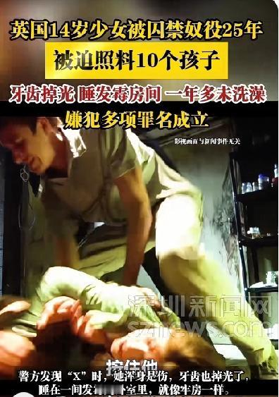 太可怕了!14岁少女被囚禁奴役25年,牙齿被打光,睡发霉房间还要照料10个孩子! 一朵花季的蓓蕾,本应迎着阳光绽放,却在人性的阴霾中被摧残了整整25年。英国格洛斯特郡,一名14岁的弱势少女,被以收养为名的恶魔囚禁虐待,沦为免费家奴,在发霉的房间里熬过两千多个日夜,被逼照料10个孩子,牙齿被打光、一年多未洗澡,从懵懂少女熬成沧桑妇人,直至2021年才侥幸获救,2026年主犯终被定罪,迟来的正义让世人在愤怒中倍感心痛。 1995年,患有轻微学习障碍的少女,因原生家庭困境无依无靠,相识的阿曼达以临时安置为名将其接走,殊不知这是地狱的入口。阿曼达迅速切断她与外界的所有联系,封死窗户、限制活动范围,让她住进如同监狱般发霉脱落的狭小卧室。此后25年,少女成了阿曼达的私人奴隶,从清晨到深夜包揽所有繁重家务,无休无止照料10个孩子与家中宠物,稍有不慎便遭暴力对待。 扫帚柄猛击面部致牙齿全落,灌洗洁精、泼漂白水,推下楼梯、按头入马桶,强行剃光头发,这些残忍的虐待成了日常。她的基本生存权利被全然剥夺,靠残羹剩饭果腹,连烧水喝都被禁止,一年多未正常洗澡,身上异味远扬,瘦骨嶙峋的身躯满是瘀伤。 25年的暴行,因阿曼达儿子的不忍举报与少女的偷偷求救才得以终结。2021年警方将其解救,彼时她已从14岁少女变成39岁的受虐者;2026年1月,主犯阿曼达多项罪名成立,等待她的将是法律的严惩。
