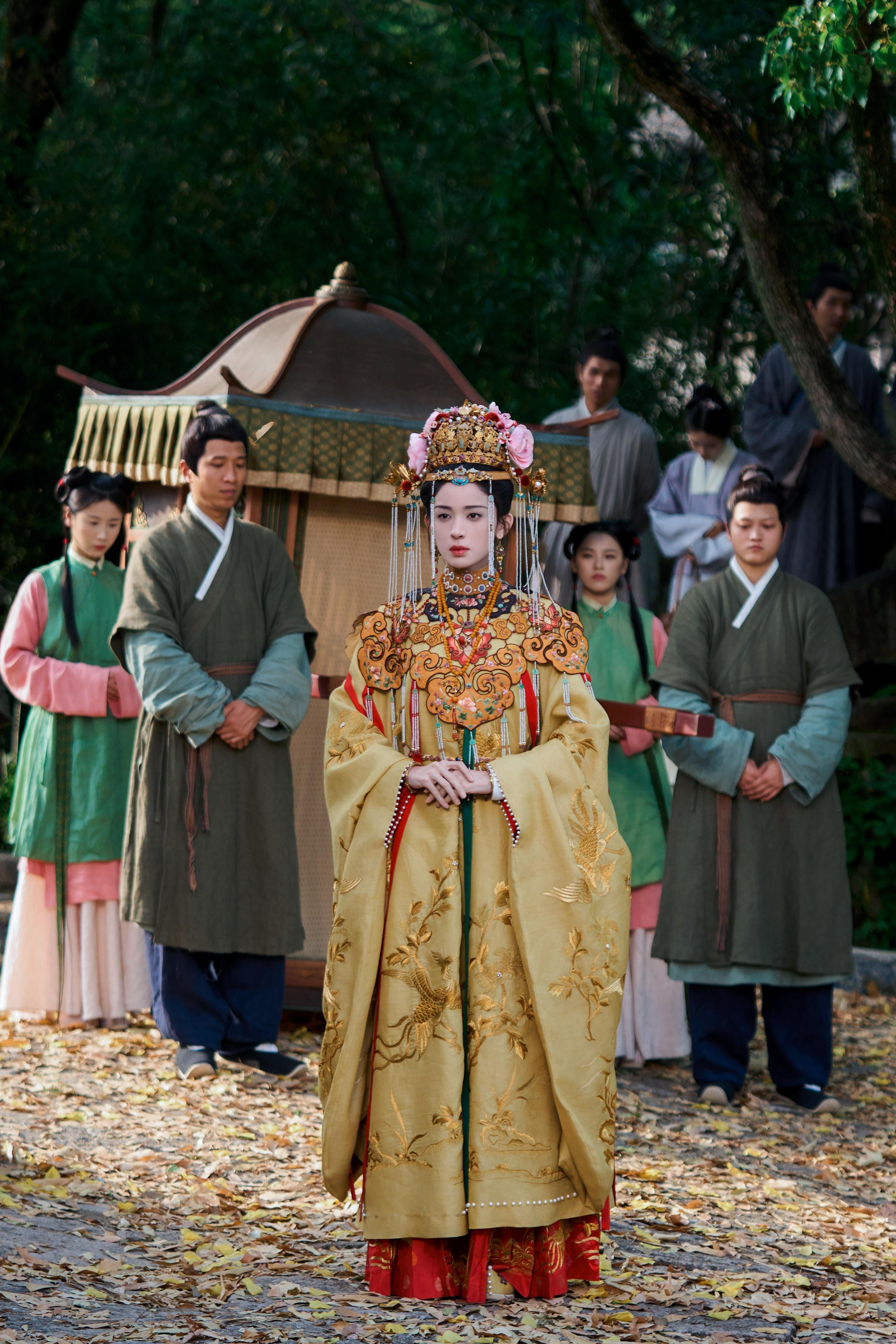 能不能get到系列❓娜扎 《玉茗茶骨》荣善宝☽ 剧照-橙衣嫁衣(云肩)+花冠⭕ 【冷门颜色嫁衣➕1】