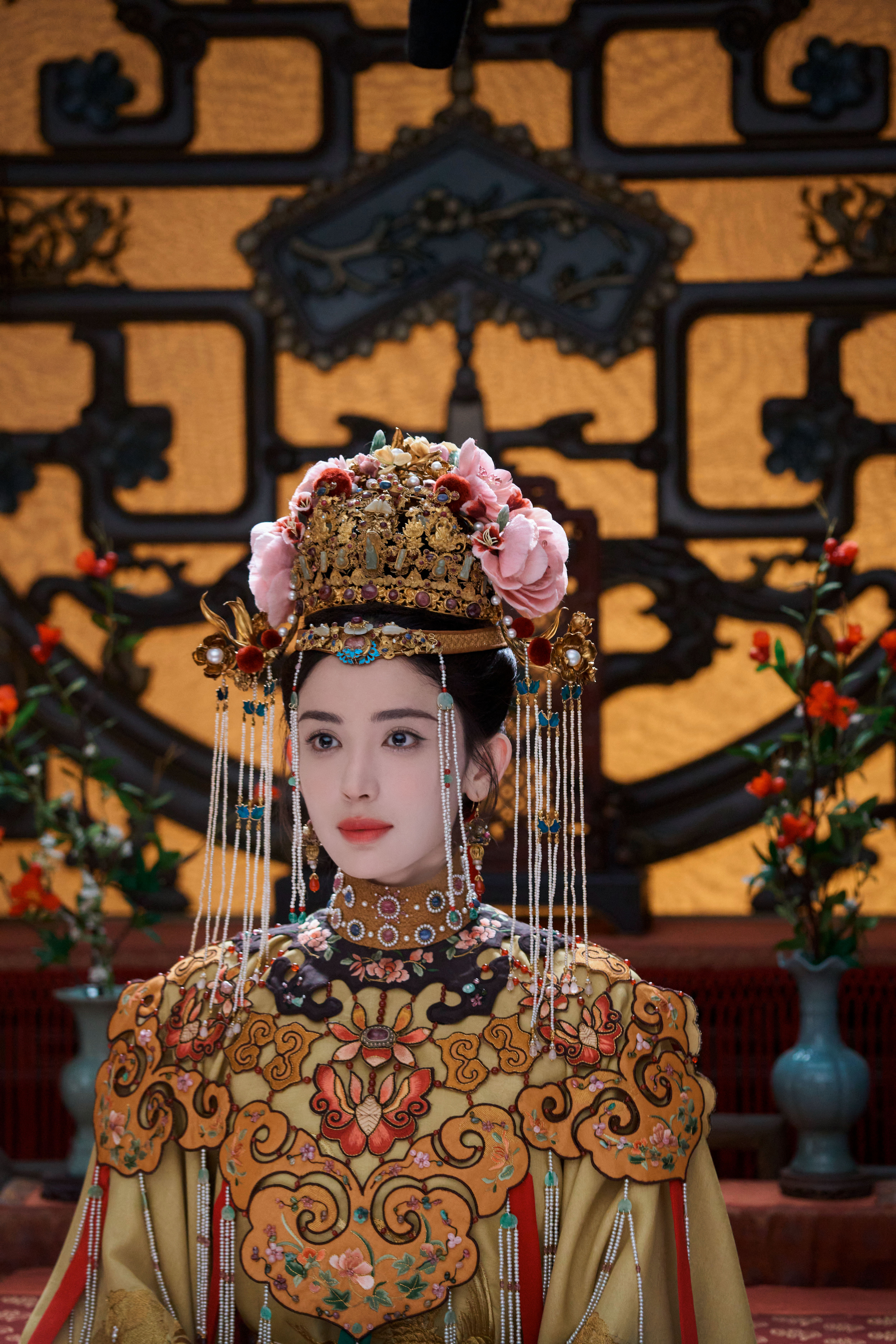 能不能get到系列❓娜扎《玉茗茶骨》荣善宝☽剧照-橙衣嫁衣(云肩)+花冠⭕