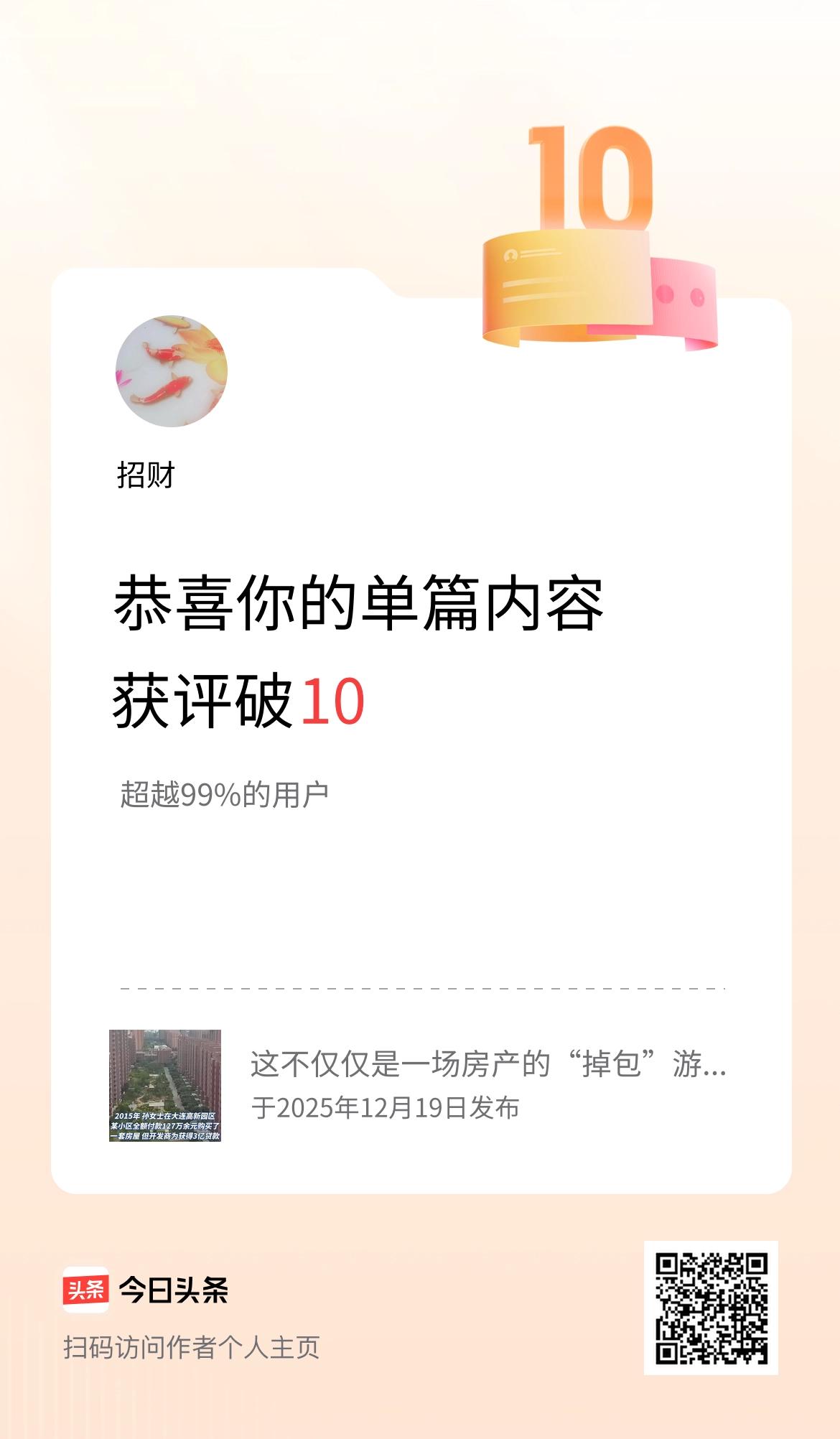 单篇内容获评论量破10啦!
