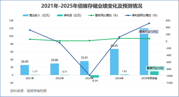 存储价格抬升,公司业绩随之增长,预计2025年佰维存储最高实现营收120亿元、净利润10亿元。
