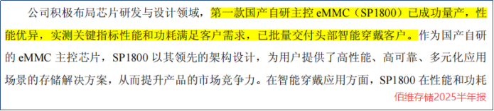自研封测两手抓,据2025年中报表述,当下,公司已经掌握16层叠Die、多芯片异构集成等封装工艺,满足自身封测需求的同时,还能对外承接代工业务。另一边,佰维存储顺利攻破IC设计环节,推出国产主控芯片SP1800。
