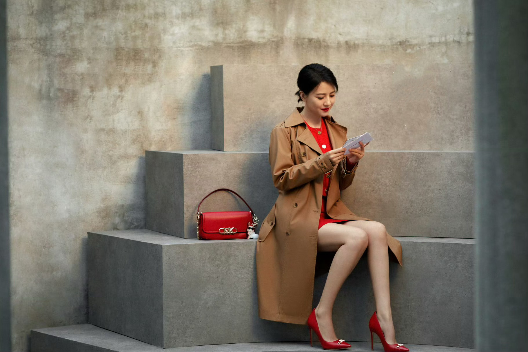 日常风衣造型随性俏皮,活动造型优雅大气,山野写真又自带氛围感,在不同风格间切换自