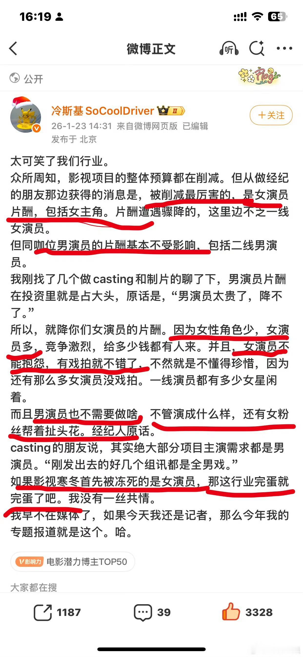 影视项目 削女演员片酬影视项目 全男戏洗洗睡吧,再削减片酬,无非是从208变成207、206......丫鬟心疼主子,爱怕不拍