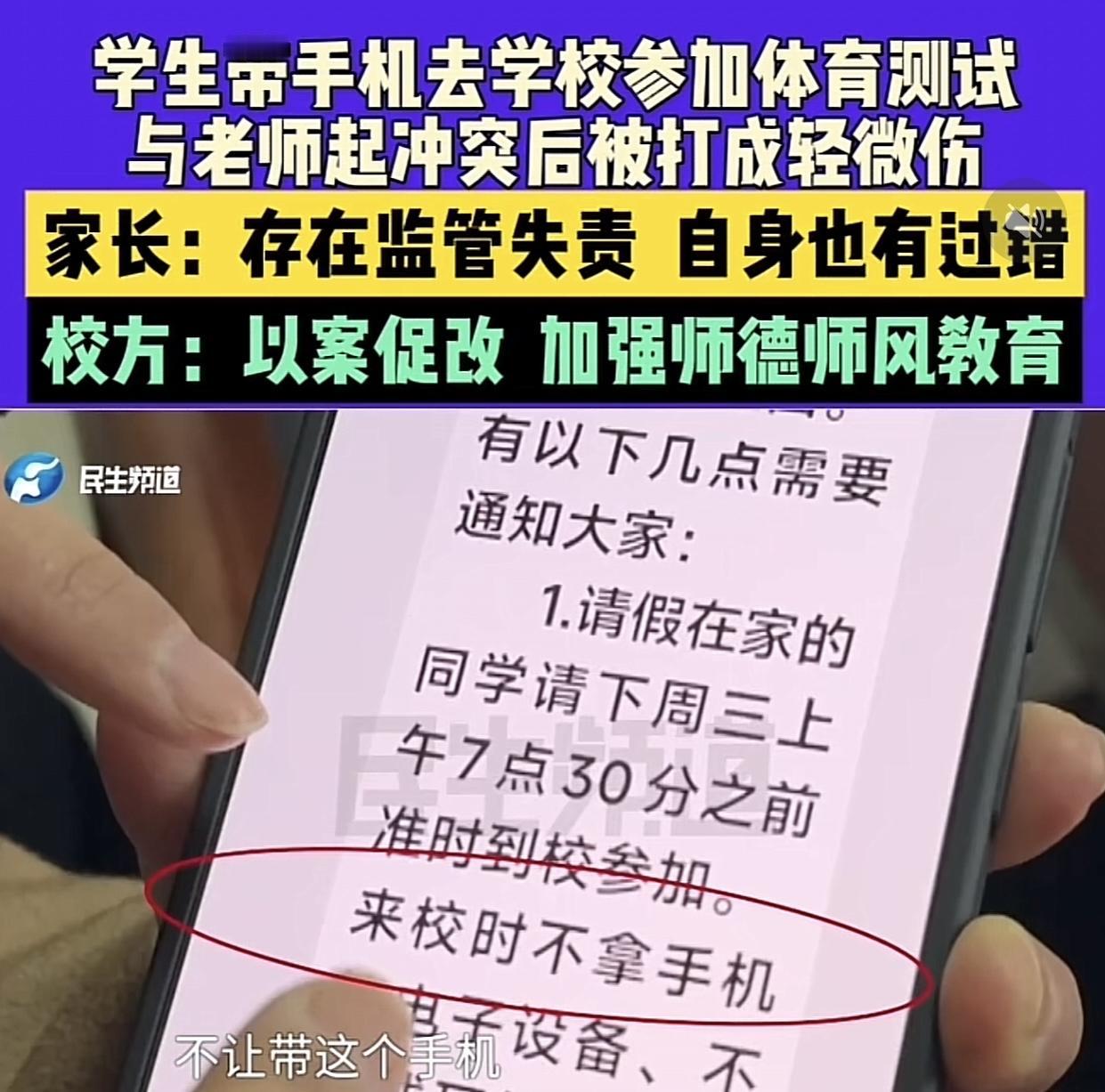 不站队的媒体+不和稀泥不跪的校长+宁愿被拘留也不低头的体育老师,这个组合解气但又让人心疼,学生骂老师而且还动手,老师还击的结果是丢工作,这放在八九十年代是难以想象的,那时候尊师重教是铁律,违反校规带手机参加体测,被批评还敢动手的底气就是认为教育者没有自卫反击的权利,反倒是那些一直强调要爱护学生放弃体罚的伪专家们这个时候一言不发。